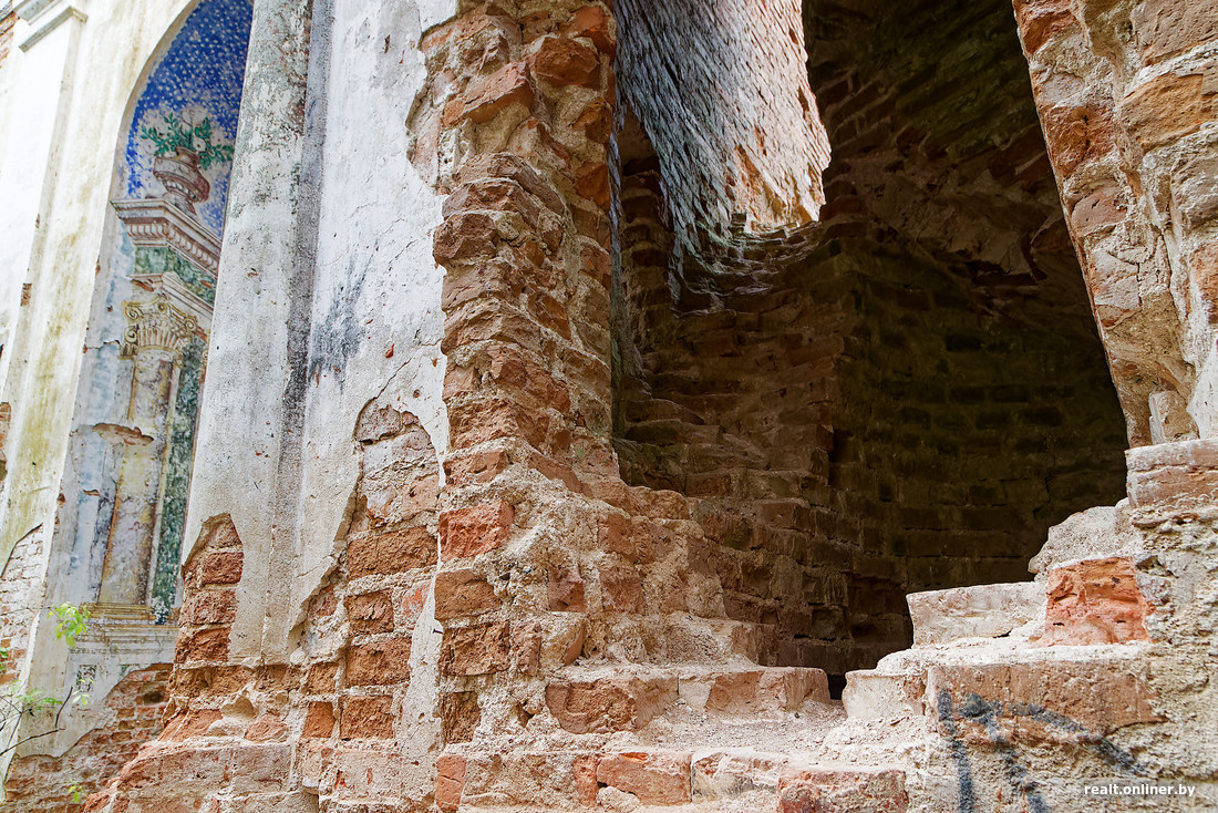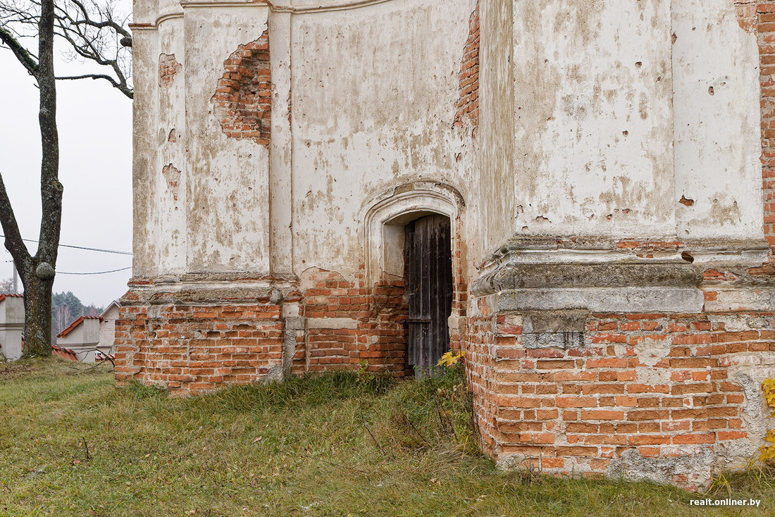 Мы скользим по мокрым доскам, цепляемся за стены и дикую поросль. Остатки кирпичной кладки служат нам лесенкой, но вмещают только половину стопы. Чтобы забраться в костел Святой Троицы, надо буквально встать на цыпочки и по древней кладке осторожно спуститься на бугристую землю. Под ногами — трава, над головой — небо. Стены сохранили алтарь, органные хоры, оконные арки, фрагменты росписи. Даже изрядно потрепанный, Троицкий костел в Лысково, что в Брестской области, не растратил великолепия и вызывает неподдельный интерес. Входы в бывший храм (а сегодня памятник архитектуры позднего барокко) постоянно заколачивают, но доски снова и снова отрывают любопытные люди.