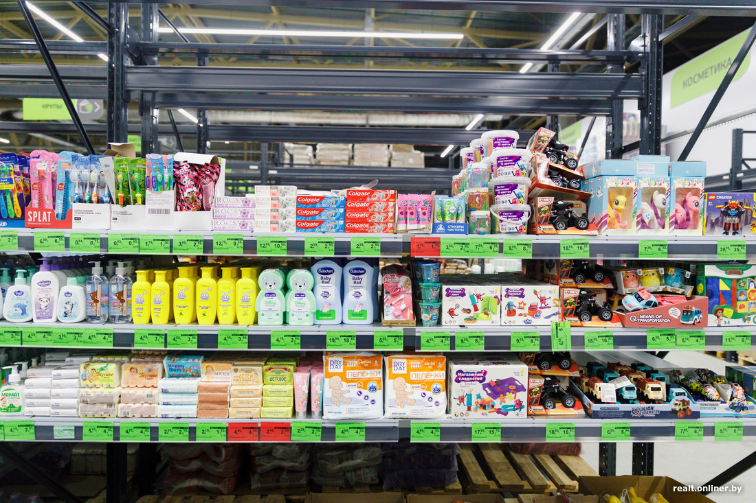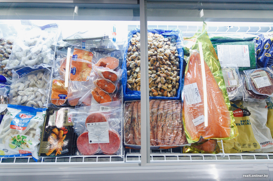 Как мы уже писали, на полках представлено более 6000 товаров. Кажется, есть все: молочка, колбасные деликатесы, замороженные продукты, выпечка, бакалея и напитки. А кроме этого, бытовая химия, товары для животных и для дома.