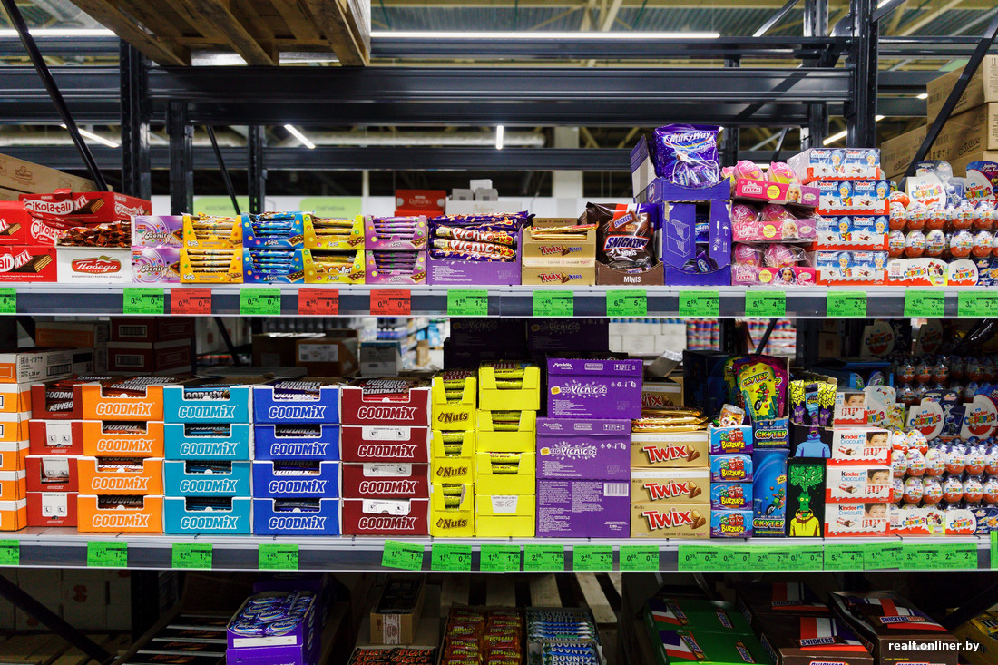 Среди бакалейных рядов можно найти банку горошка за 2,39 рубля и оливок за 2,65. Пачку чипсов Lay’s отдают за рубль, а «роллтона» — за 59 копеек. Банка кофе Nescafe — 12,98 рубля, апельсиновый нектар — 2,35, а полтора литра Coca-Cola — 2,59. Столько же минералки «Фрост» предлагают за рубль, тогда как бутылка «Боржоми» (0,75 л) выйдет в 2,5 раза дороже.