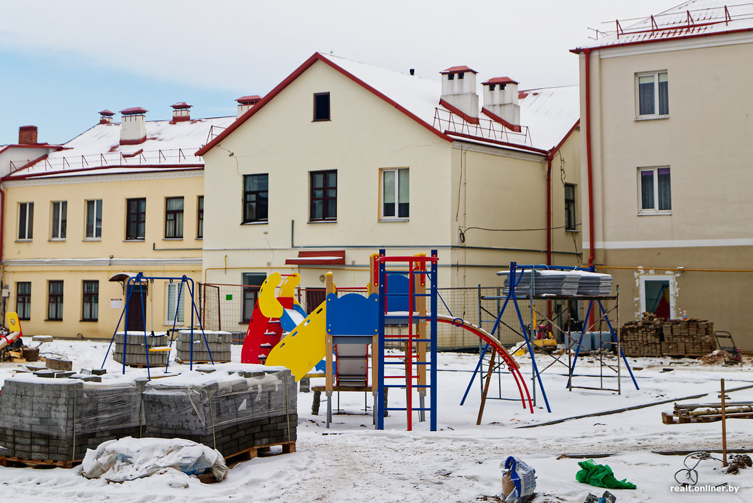 По каждому кварталу делалась историческая справка, которую заказывали известному в Бресте специалисту Николаю Власюку. На ее основе разрабатывался строительный проект, пронизанный привязками к особенному месту. Например, 4-этажный 32-квартирный внутриквартальный дом на улице 17 Сентября выполнен с учетом традиций исторической застройки квартала: два нижних этажа «собраны» из коричневого керамического кирпича, а на отделке фасада верхних этажей — легкий штукатурный состав светлых оттенков. Хотелось, чтобы внутри квартала новый дом не давил высотой: два этажа у земли — дань традиции, два последних — сливаются с небом. Причем кирпич специально не оштукатурен, чтобы постройка оставалась в историческом контексте, когда внутренние фасады в Бресте не штукатурили.