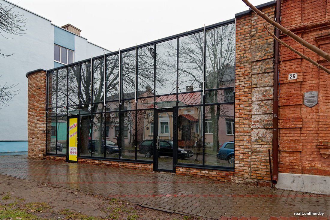 К тихой улице Дзержинского коммерческое здание обращено витринами из алюминия и стекла. Создается любопытный эффект: масштабное отражение (высота потолков в помещении — от 4,5 до 5 метров) делает узкую улочку шире и формирует акцентный участок в неприметном когда-то месте. В вечернее время здесь еще будет работать подсветка.