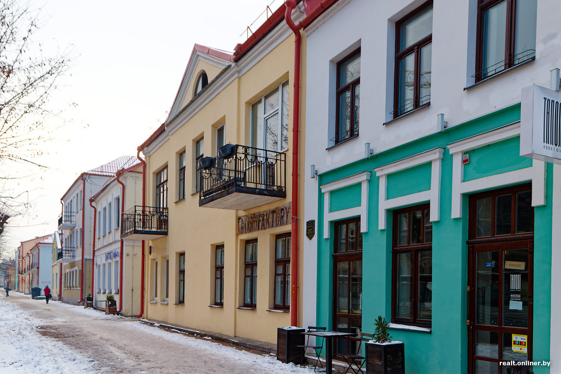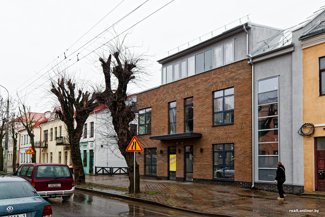На Гоголя «Аматар» воплотил иную, более смелую архитектуру. Четырехэтажное здание возле популярного в Бресте грузинского ресторана «Хинкальня» напоминает центр Стокгольма. Четвертый этаж задуман так, чтобы максимально «сбивать» высоту постройки, — он предстает в виде цепочки «домиков на крыше».