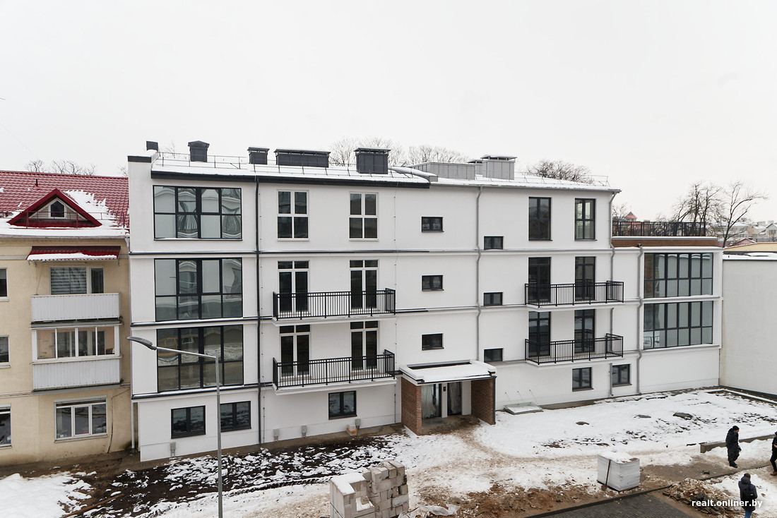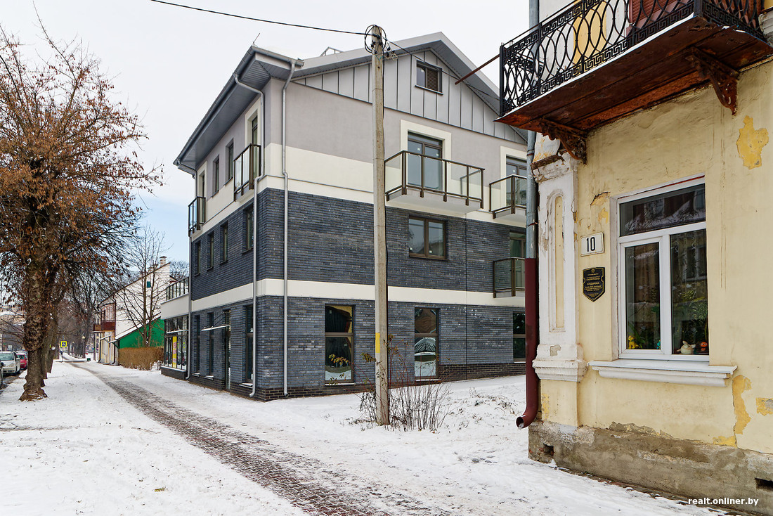 Новодел возведен на месте деревянного строения из двух блоков по две квартиры в каждом. Теперь на прежних «квадратах» вырос дом, где будут проживать восемь семей. На втором и третьем этажах предусмотрены 4-комнатная и две 3-комнатные квартиры, в каждой из которых — просторная кухня-гостиная с выходом на балкон; из спален — выход на лоджии.
