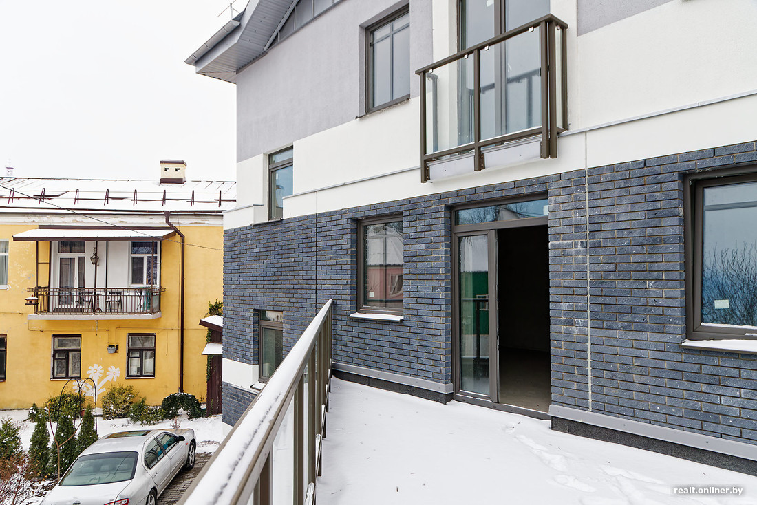 Террасы, отмечающие статус Бреста как самого теплого города Беларуси, — отличительная черта проекта. Одна из них создает акцент в архитектуре дома по адресу 17 Сентября, 3. На последнем, третьем этаже терраса в элитной квартире площадью около 100 квадратных метров занимает 22 «квадрата». Потолком здесь является кровля, планировка — свободная. Весь второй этаж дома также занимает одна квартира со свободной планировкой, где можно разместить четыре комнаты и кухню-гостиную с выходом на балкон. Первый этаж отведен под арендные помещения с нулевой входной группой.