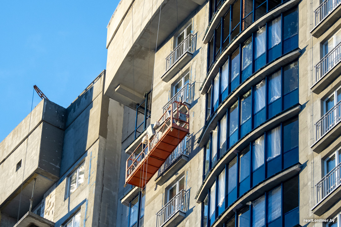 Активная фаза работ на бело-синем долгострое началась с первыми летними днями. И вот вам результат: две секции (те, что и были в наибольшей степени готовности) уже завершены. Правда, тем, кто когда-то уже оплатил все свои метры, квартиры так просто не забрать — надо доплатить почти по 2000 рублей за «квадрат». Ну или, если денег нет, продать то, что так долго ждали («стена» должна была быть сдана в 2018-м).