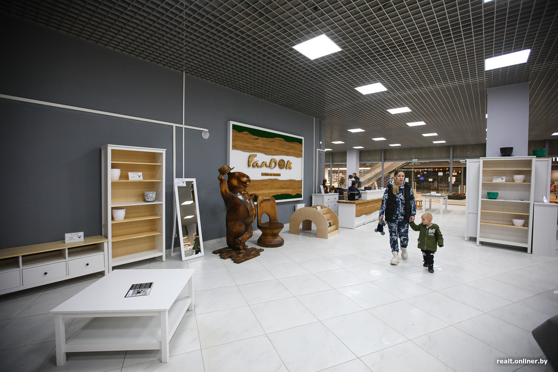 Что еще интересного есть в торговом центре? Белорусский паркет «Косвик», входные двери от «Стальной линии», плитка «Керамин», мебель от барановичской фабрики «Диприз» и витебской Savlukov mebel.