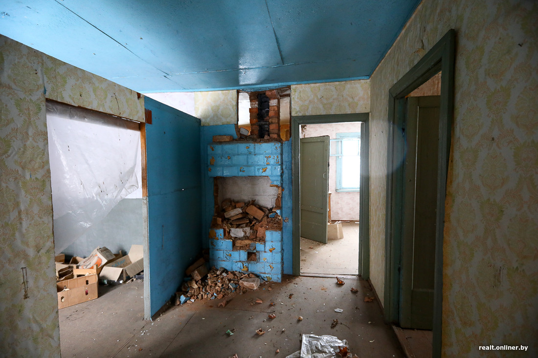 Общая площадь дома — 50 «квадратов», ремонт старенький, сохранилась кое-какая мебель (хотя вряд ли она кому-то пригодится). На крыше — шифер. Целый, пока нигде не протекает. Печка едва ли живая.