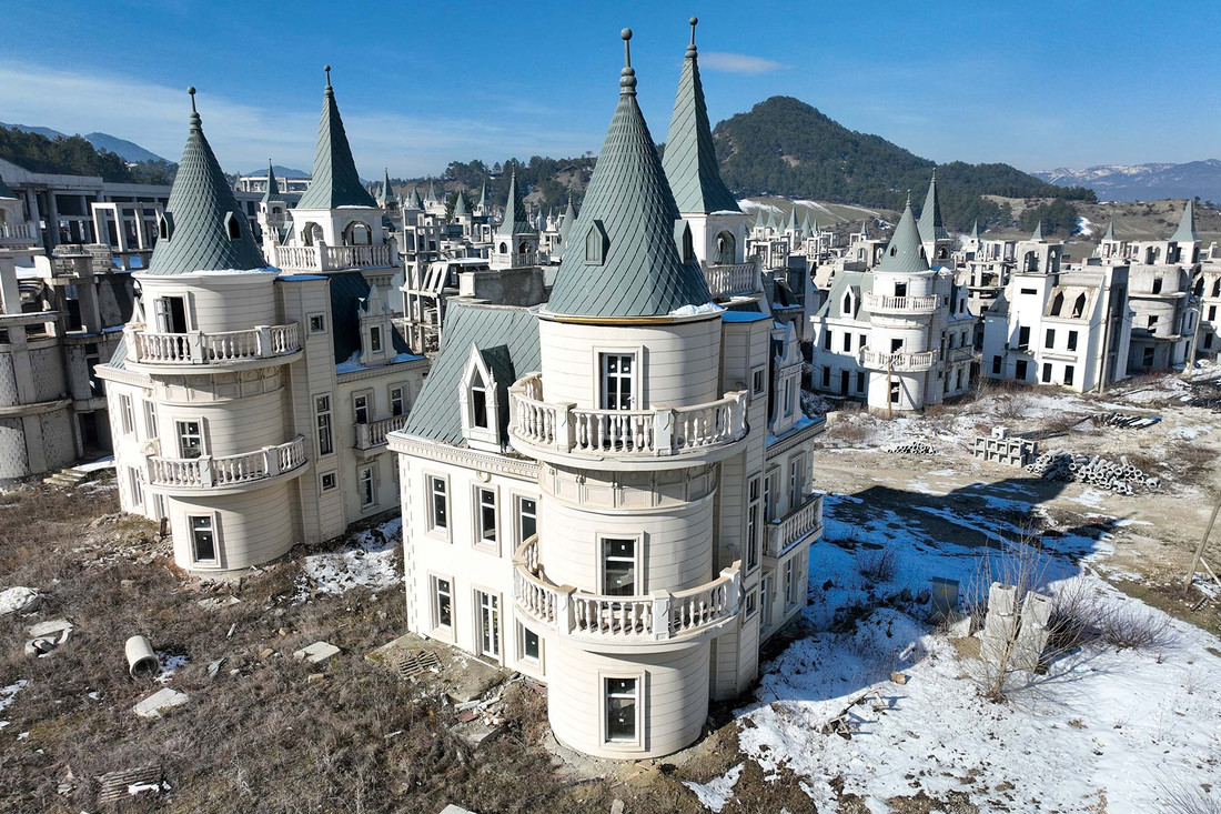 Фотографии этого объекта выглядят сюрреалистично. В горной долине, тесно прижавшись друг к другу, расположились десятки и десятки одинаковых особняков, будто бы перенесенных сюда откуда-то из Европы и размноженных клонированием. Предполагалось, что сюда въедут состоятельные инвесторы с Ближнего Востока, но в итоге здания стоят пустыми уже несколько лет, постепенно разрушаясь под воздействием климата. Шансов на то, что этот амбициозный девелоперский проект на северо-западе Турции будет завершен, с каждым годом все меньше и меньше, но и в таком виде он уже успел стать культовой достопримечательностью — по крайней мере, у любителей заброшек. Как городок появился и почему у застройщика все закончилось впечатляющим провалом?