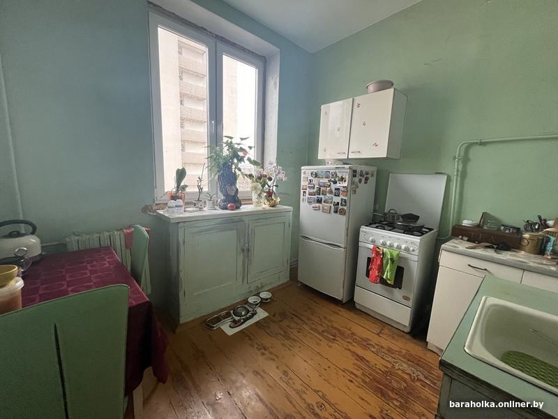 Столько же хотят владельцы комнаты в центре Минска, прямо на улице Октябрьской, так что если вы тусовщик — присмотритесь. Здесь предлагают 7/20 долей с закрепленными правилами пользования. Покупателю достанется комната размером 27,25 «квадрата» с потолками 3,1 м. Конечно, вид у нее уже подуставший: старые обои, ковры на стенах. Зато обратите внимание на паркет елочкой: все еще достойно выглядит!