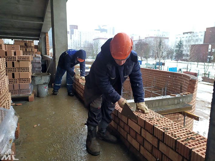 По словам прораба Николая Воробья, только наружных стен из мелкоштучного кирпича предстоит выложить 1200 кубическх метров, а площадь перегородок (их возведут из керамзитобетона) составляет 16 000 «квадратов» плюс порядка 170 кубометров стен воздухозаборных камер и технического этажа.