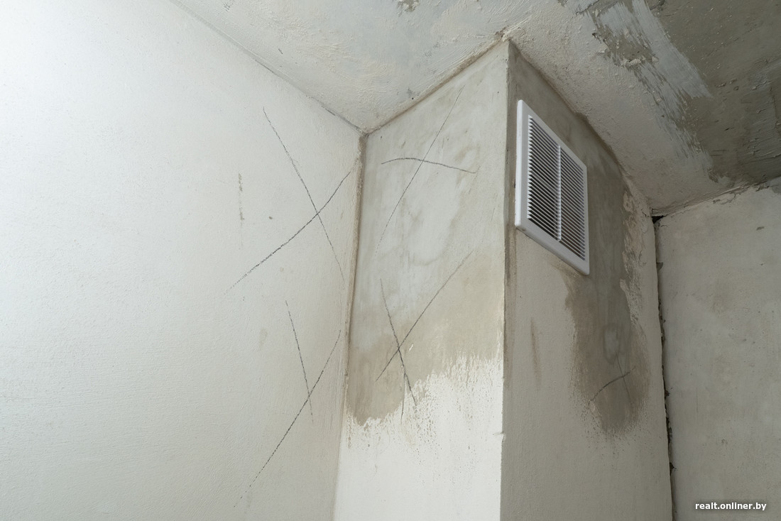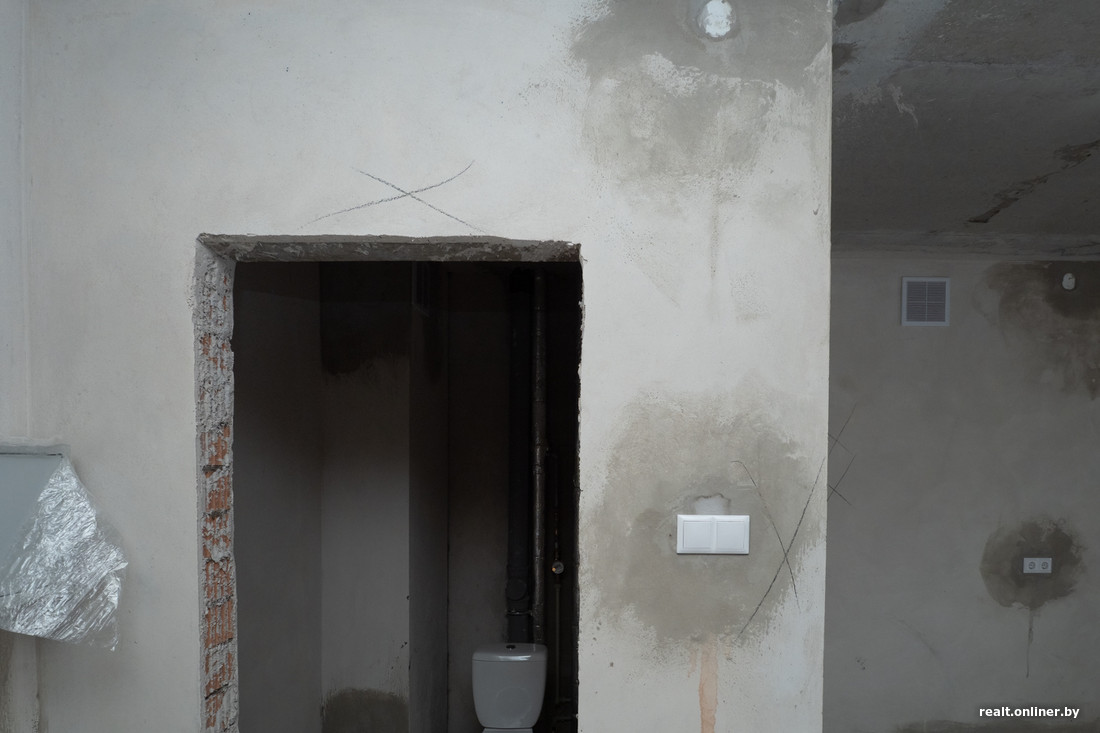 Со стенами уже все не так весело. Почти во всех помещениях видим крестики — так обозначены места, где штукатурка «загуляла».