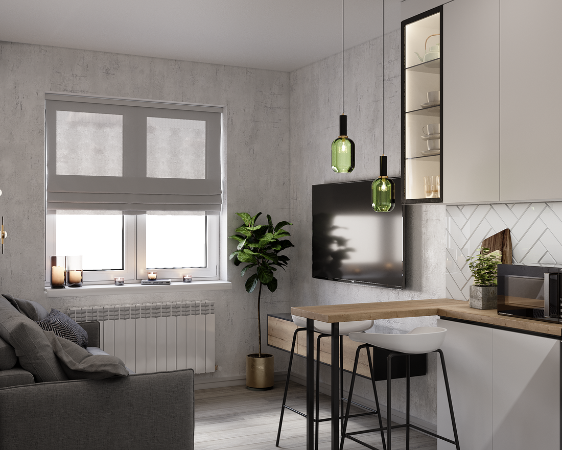 За основу мы взяли реально существующую квартиру в комплексе «Минск-Мир». Ее площадь — всего 29,59 «квадрата». Казалось бы, такой размер подходит разве что для студии, в которой будет жить один, ну максимум два человека. Но в данном случае задача была куда сложнее: однушка предназначалась для семьи с ребенком, для которого родители хотели выделить хоть и крошечную, но свою комнату. Сами же взрослые были готовы ютиться в кухне-гостиной.