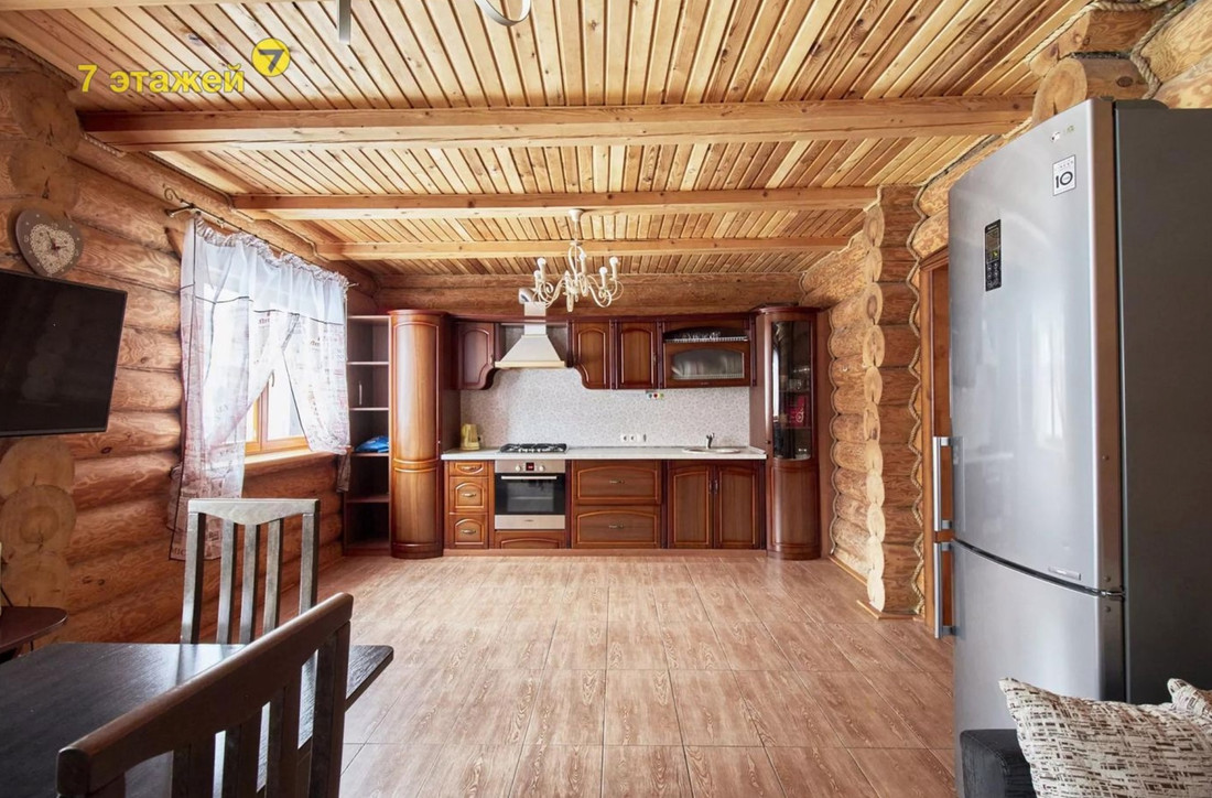 Всего на $1000 дороже обойдется деревянный дом, с виду похожий на сказочную избушку, неожиданно материализовавшуюся в Раубичах. В нем три этажа и 350 «квадратов» площади. Имеются три спальни, гостиная со вторым светом и настоящей русской печью, большая кухня, санузел.