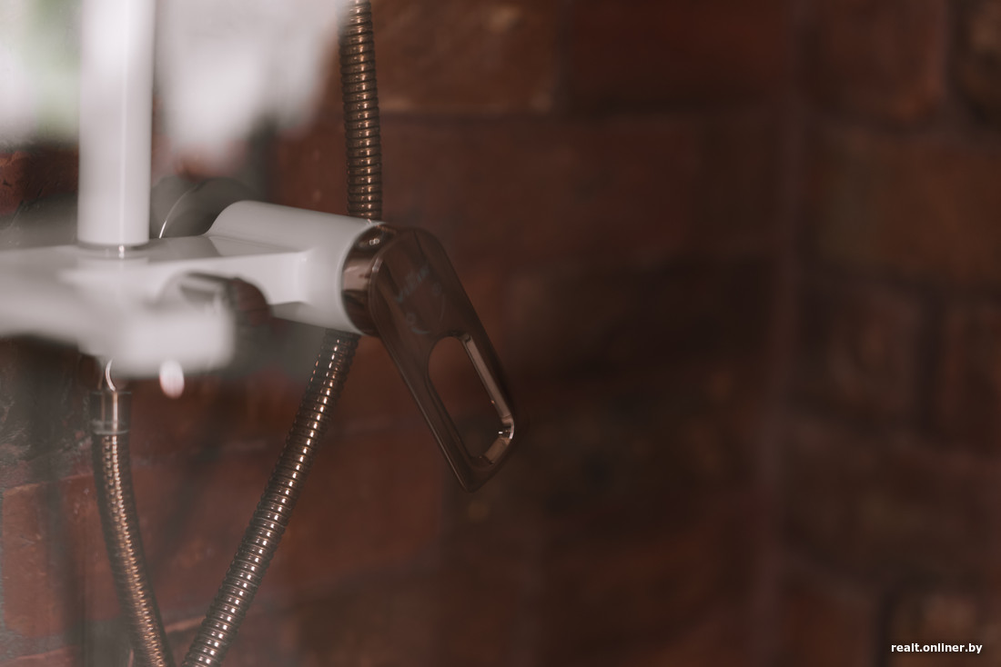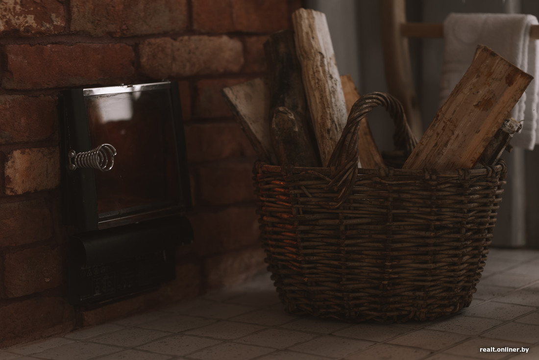 В ванной комнате поставила польский унитаз, бойлер для теплой воды. Умывальник из цельного куска камня заказывала у белорусского мастера, о котором прочитала на Onlíner. Под такую раковину нужен был необычный столик. Его изготовили из слэба тополя, который когда-то рос на территории усадьбы М. К. Огинского — она находится неподалеку. Не волнуйтесь: дерево было старым, и его спилили на дрова еще до меня. В диаметре оно больше метра — возможно, сам композитор когда-то под ним гулял. Таким образом удалось сохранить частичку истории.