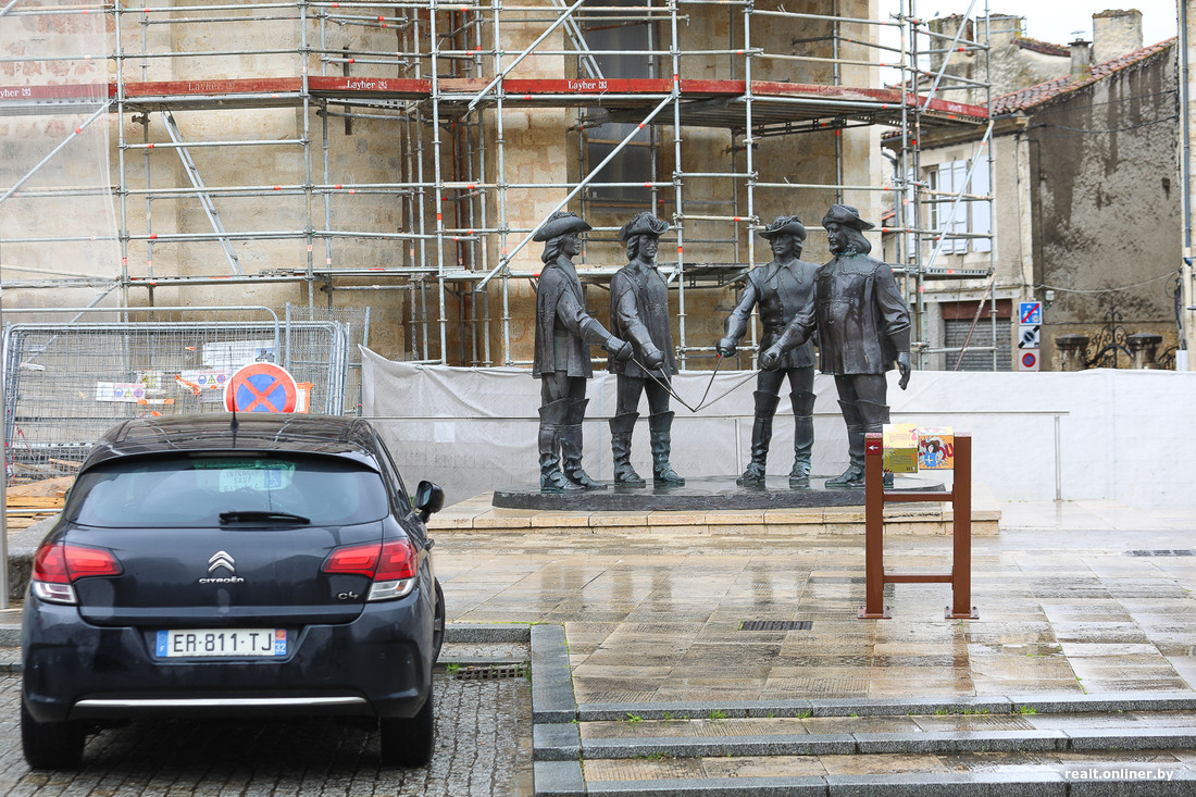 У кондомских мушкетеров действительно лица Михаила Боярского, Вениамина Смехова, Валентина Смирнитского и Игоря Старыгина, но причина этого вовсе не в какой-то особенной популярности советской экранизации знаменитого романа во Франции или конкретно в Гаскони. Этот монумент, установленный в городе в 2010 году, — подарок. Скульптор Зураб Церетели, известный, скорее, своими монументальными работами, преподнес этот камерный памятник в дар французскому политику, сенатору Эмери де Монтескью, дальнему потомку реально существовавшего шевалье д’Артаньяна. И уже по воле наследника подарок оказался в Кондоме, за четырнадцать прошедших лет успев стать чуть ли не главной городской достопримечательностью.