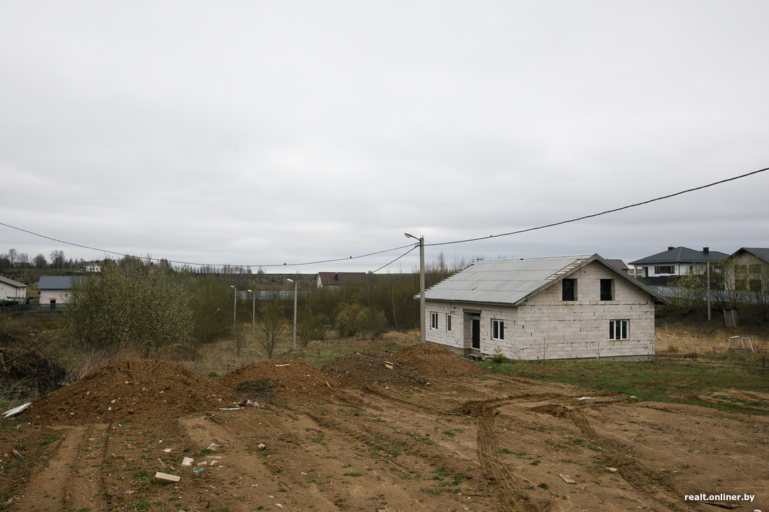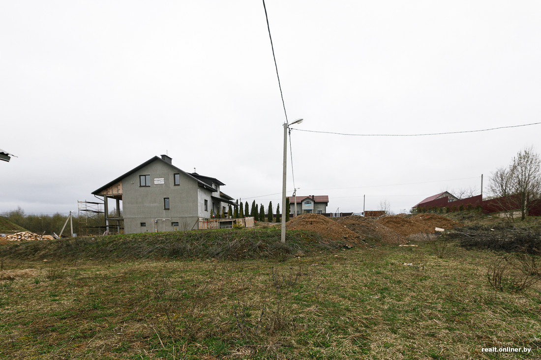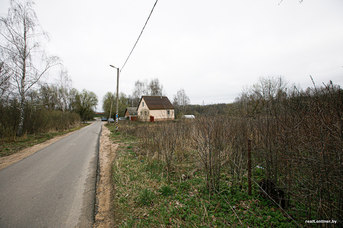 Если посмотреть на соседние постройки, то можно заметить, что хозяева подсыпали свои участки. Сделать это, вероятно, придется и новому собственнику 15 соток в Городище. А это немалые деньги: один самосвал земли на такой площади растворится так, что и не заметишь. В общем, надел хоть и находится близко к Минску, однако потребует вложений. Зато с инженерной инфраструктурой порядок: электричество, газ, водопровод. Про инженерную инфраструктуру в объявлении ничего не сказано, но по крайней мере электрические столбы видны.