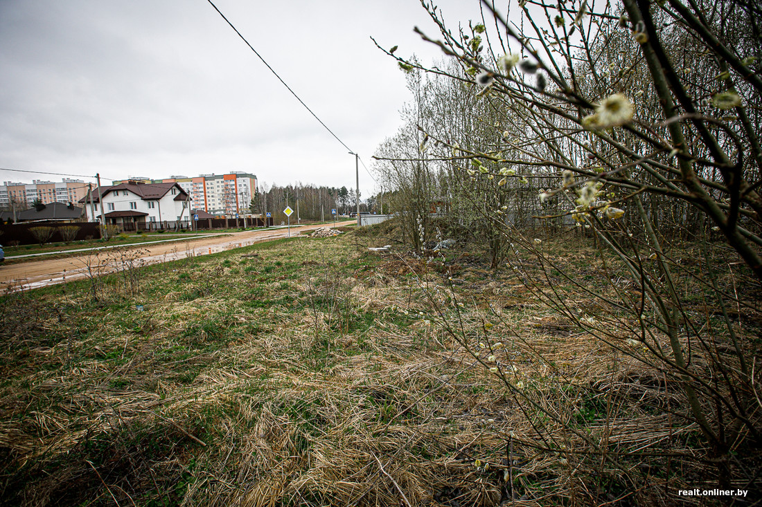 Первой ласточкой, на которой будут опробованы аппетиты белорусов в 2024-м, станут почти 14 соток в переулке Облачном, 1. Место не столь живописное — заказника через дорогу нет, как и полного уединения. Но зато локация обжита: вокруг коттеджная застройка, проложены дороги, стоят электрические столбы.