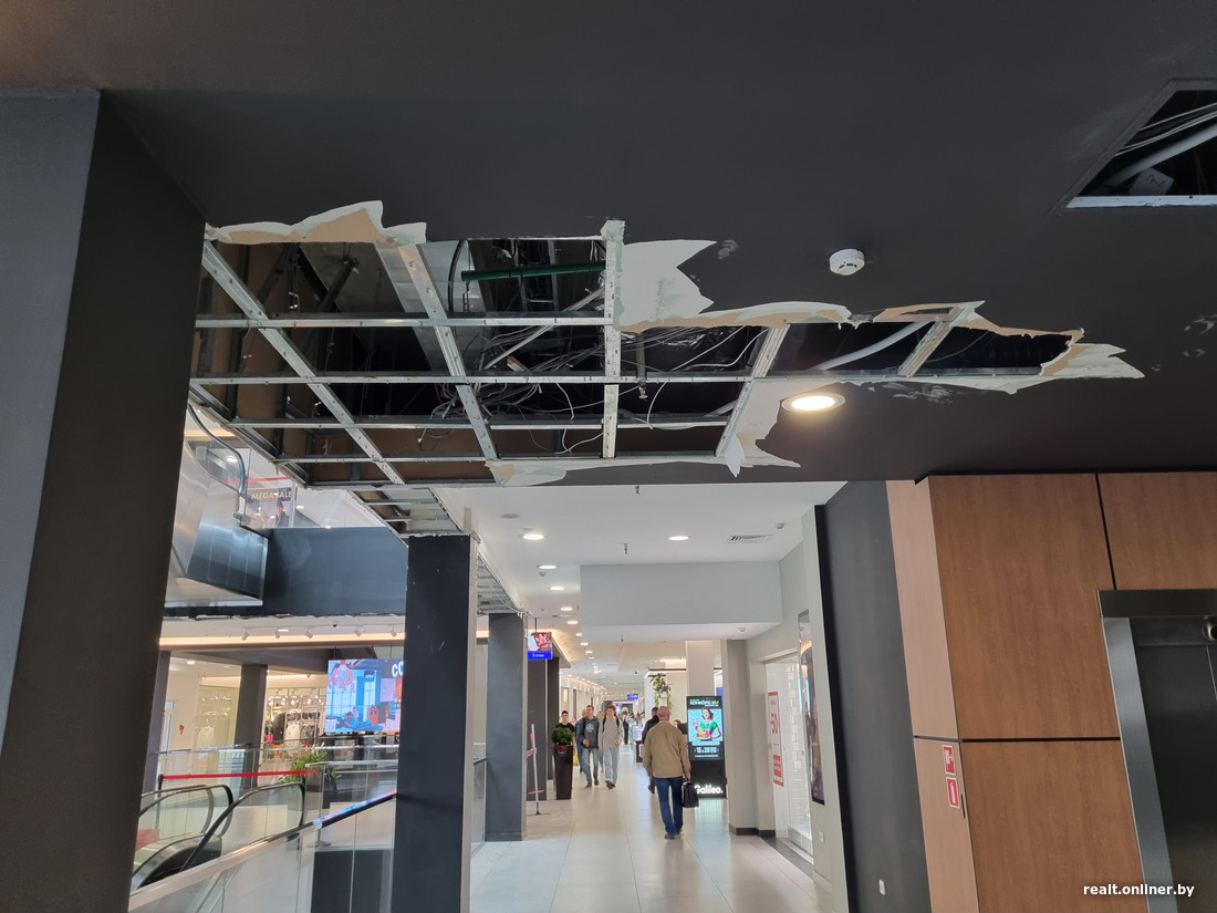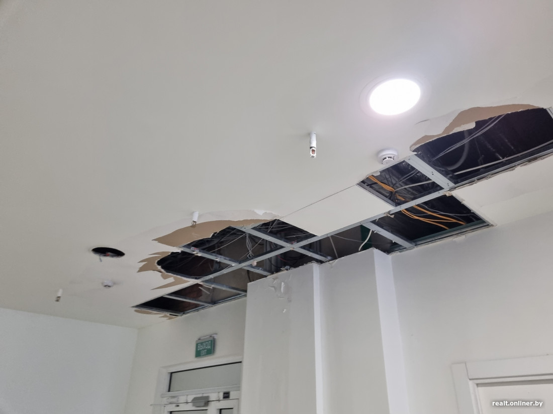 «В Galileo я бываю довольно часто. Еще зимой замечала, что в фудмолле „Конкорс“ и тренажерном зале „выпадают осадки“ — не такого масштаба, но все же. Да и трещины на стенах здания есть. А сейчас — вот такое. Становится веселее и веселее. Безопасно ли в ТЦ вообще находиться?» — задается вопросом одна из посетительниц.
