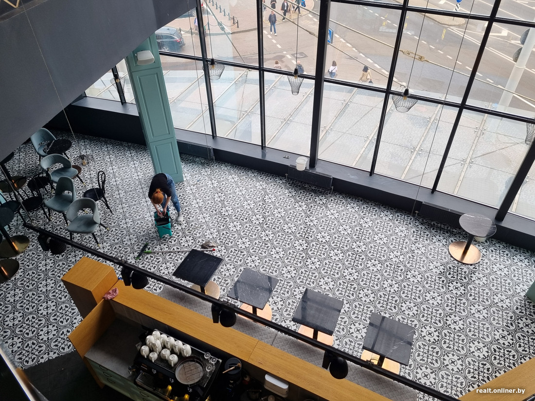 Galileo открылся сегодня по расписанию — никаких задержек. С утра в ТРЦ немноголюдно. Часть площадей огорожена лентами. Следы потопа видны невооруженным взглядом.