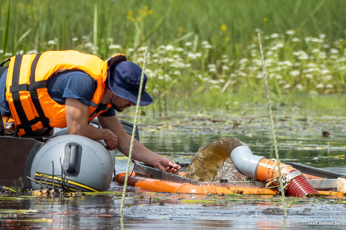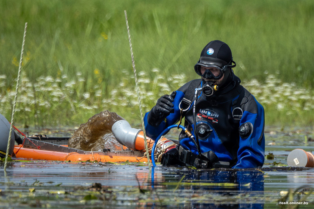 — Основная сложность исследований на воде заключается в том, что русло реки несет большие массы песка и неоднократно перелопачено углублением фарватера, а на старицах присутствуют большие илистые отложения. Их толщина может достигать 45—50 см, — поясняет Вадим. — Поэтому чтобы дойти до дна, где могут быть обнаружены находки, водолазам приходится трудиться по несколько часов. Андрей, руководитель дайвинг-центра «Морской пегас», использует специальную систему, с помощью которой донные отложения, вместе с находящимися в них артефактами, поднимаются на поверхность.