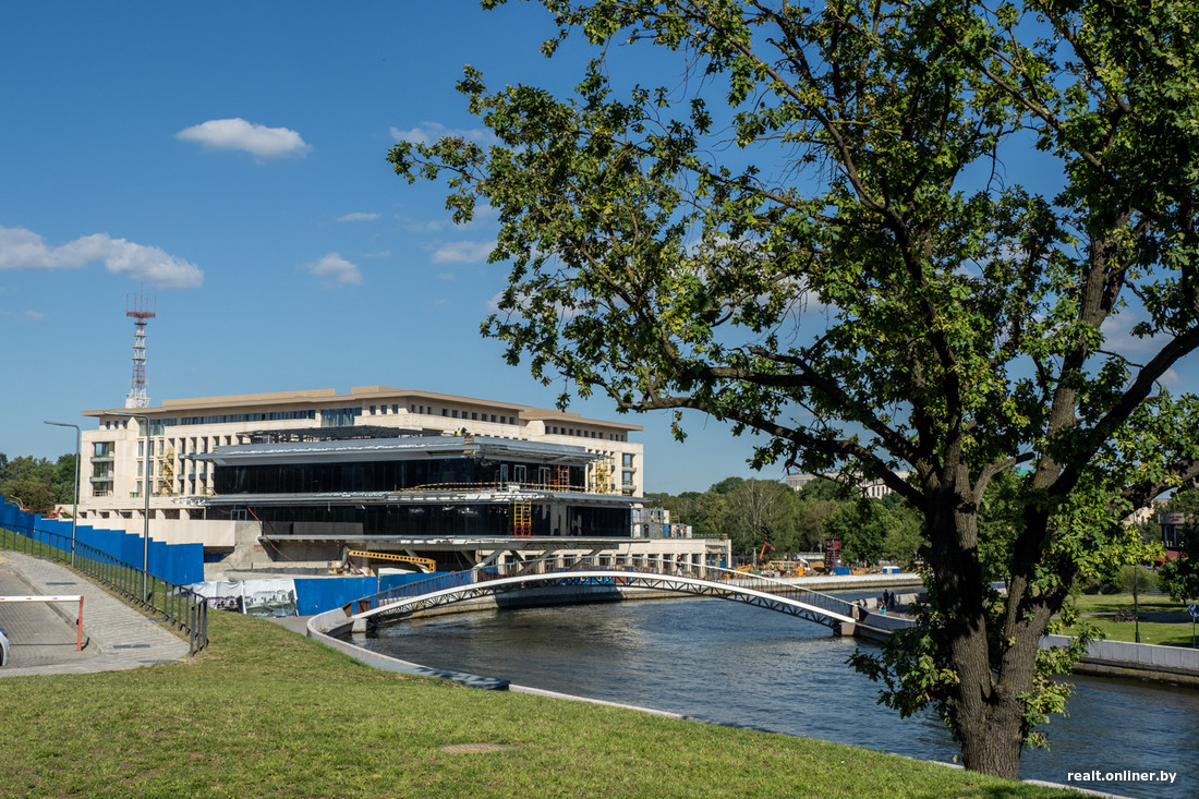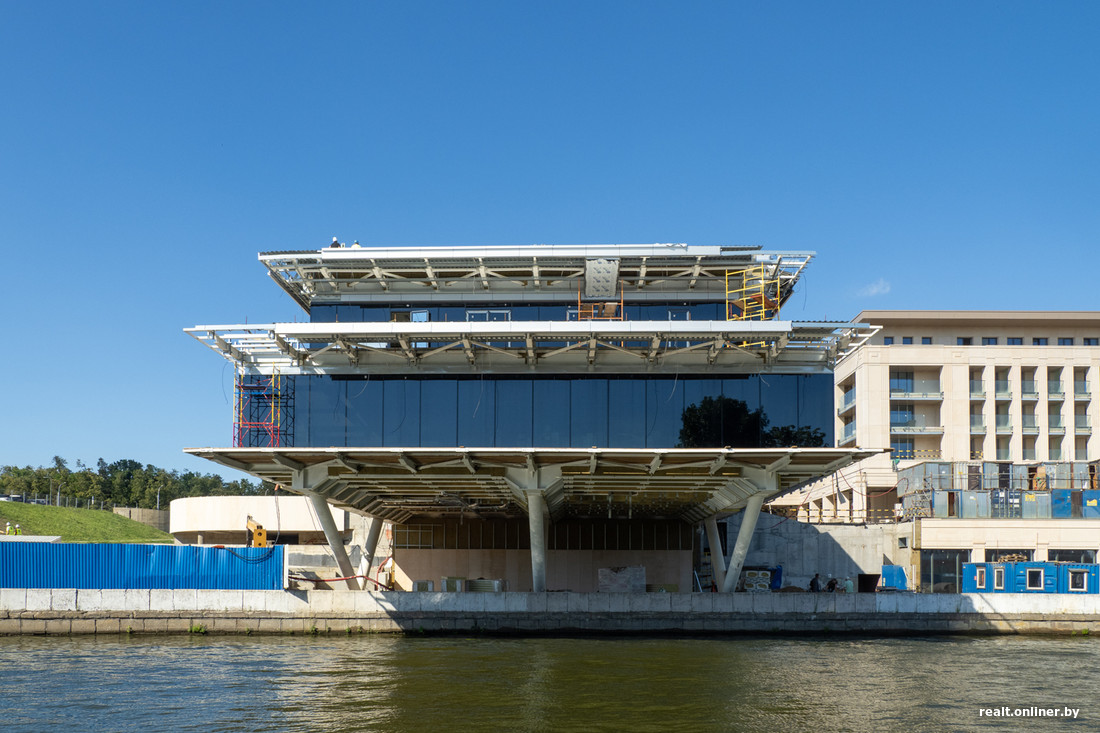 Это одна из самых грандиозных строек Минска на текущий момент. Десятки тысяч квадратных метров, панорамное остекление, «выносной» ресторан над рекой. Когда в 2017 году проводился снос здания «БелЭкспо», никто и подумать не мог, что на смену прямоугольной «стекляшке» придет такая махина (не лишенная своей привлекательности).