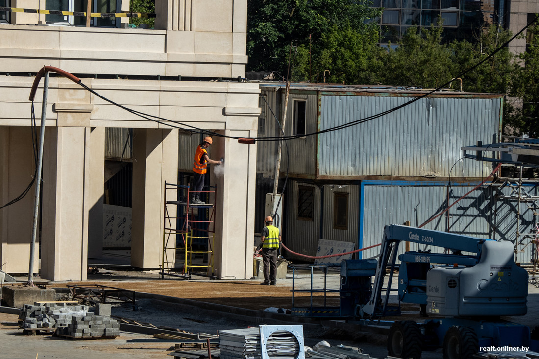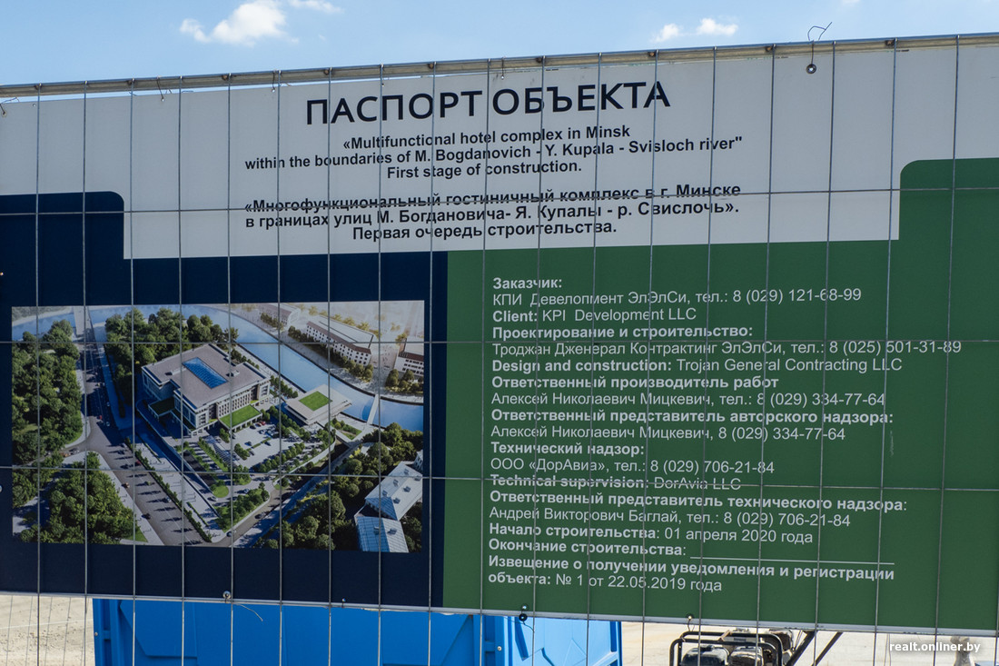 Здание в самом центре Минска — дело рук совсем не УКСа или любого другого госзастройщика. Проект реализует инвестор из Объединенных Арабских Эмиратов. Впрочем, громкое имя (Kopaonik Property Investment в качестве инвестора и «КПИ Девелопмент Эл Эл Си» как заказчик) пока не обеспечило сверхскоростей: процесс идет уже четыре года и, как видим, до перерезания красной ленточки еще далеко. Более того, даже на обновленном паспорте объекта не написана дата окончания строительства. Согласно же прошлой «редакции» документа завершить проект планировали в марте 2023-го.
