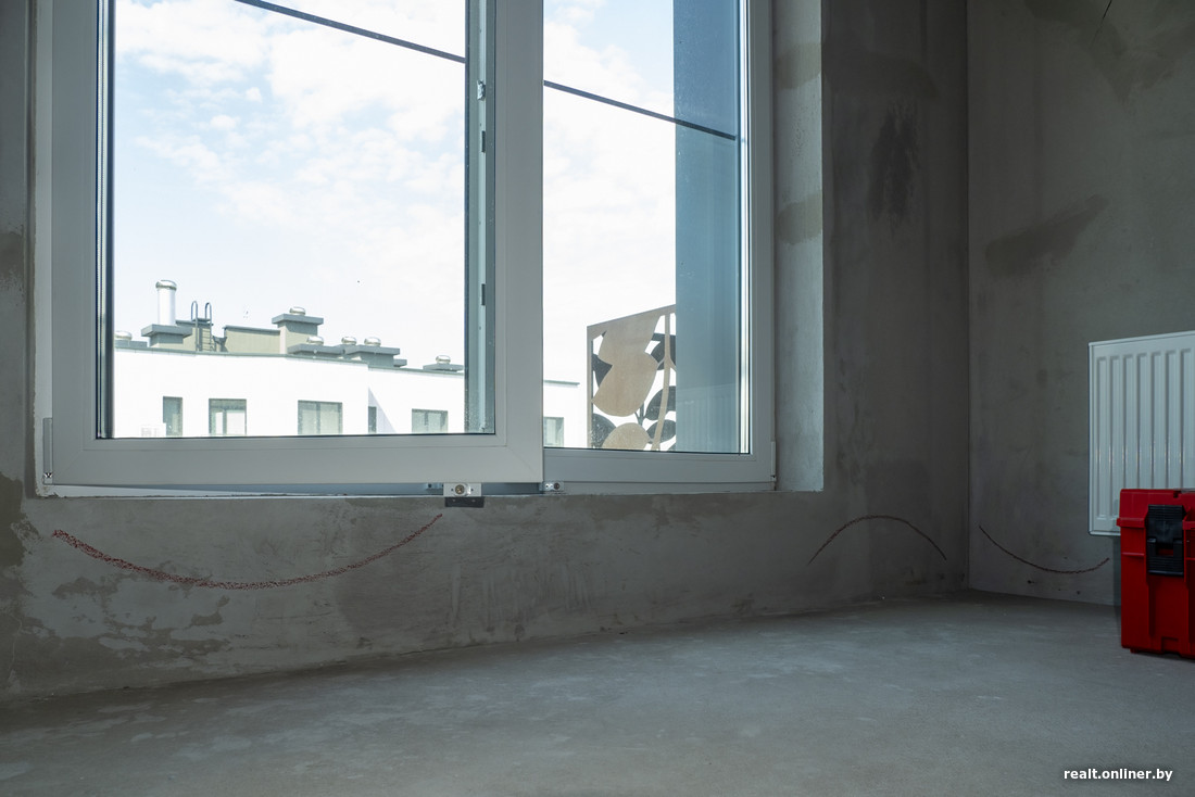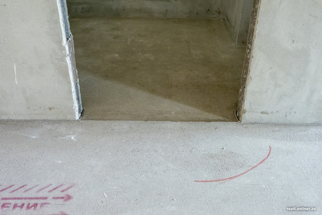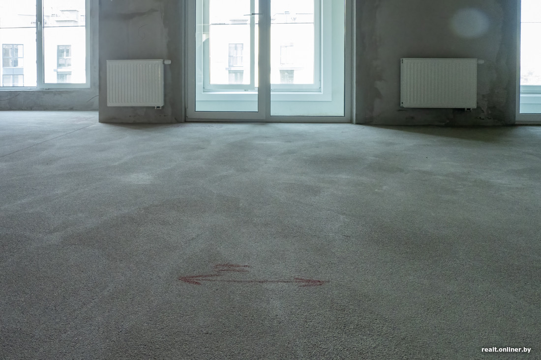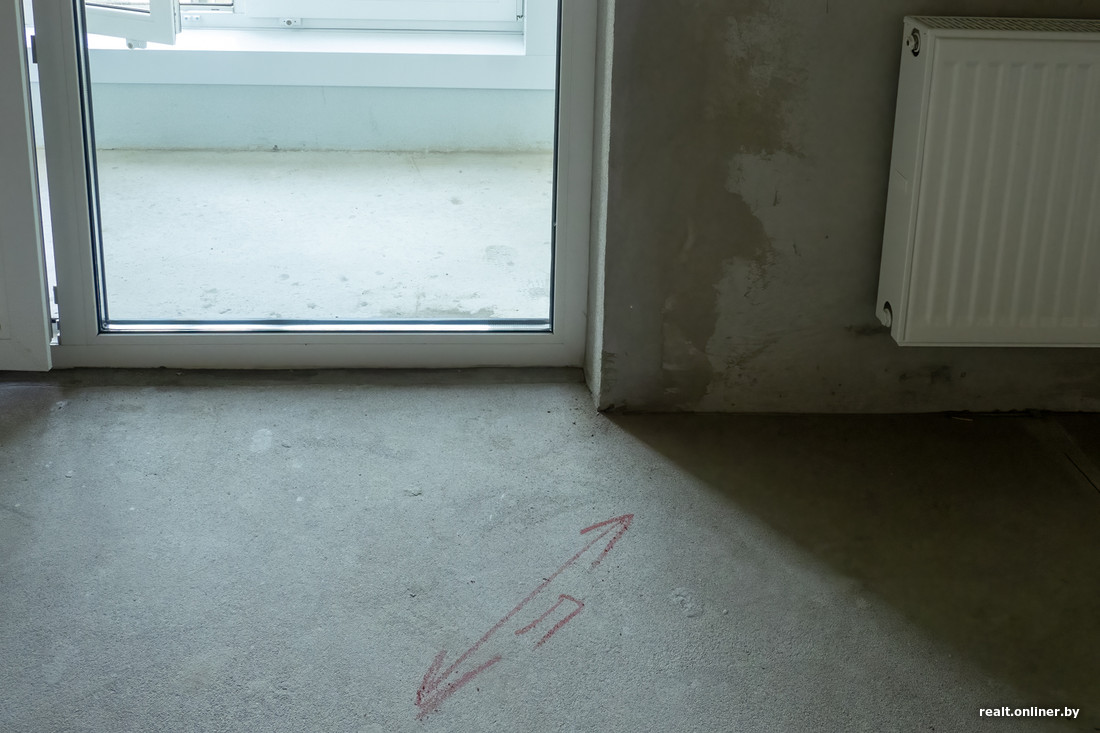 А мы отмечаем приятный момент, который все чаще встречается в новостройках: на полу обозначены места прохождения труб отопления. Больше никакого гадания «на перфораторах».