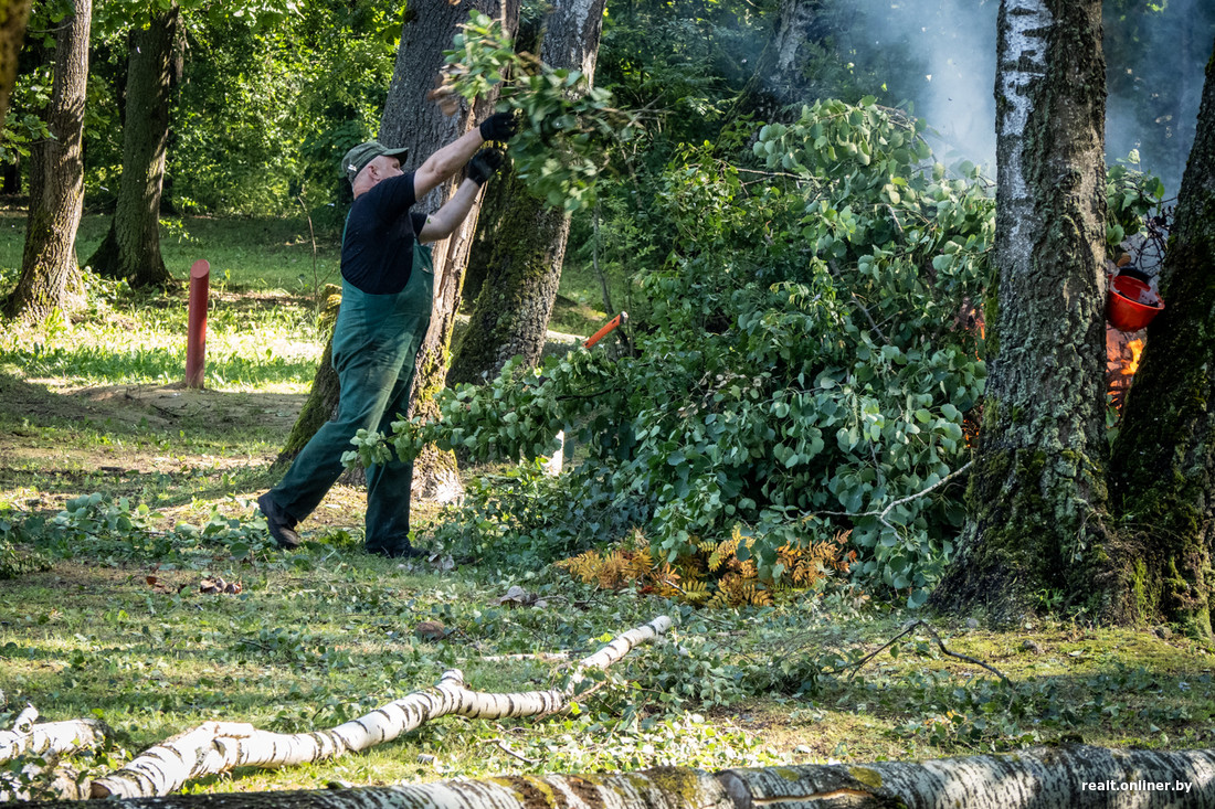 Цнянка — одно из самых популярных мест пляжного отдыха у минчан. Именно здесь вчера упало дерево, которое смертельно травмировало девушку. Утром здесь работали коммунальные службы — срезали и убирали упавшие деревья.