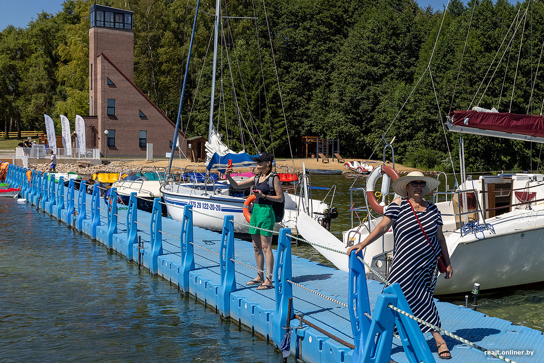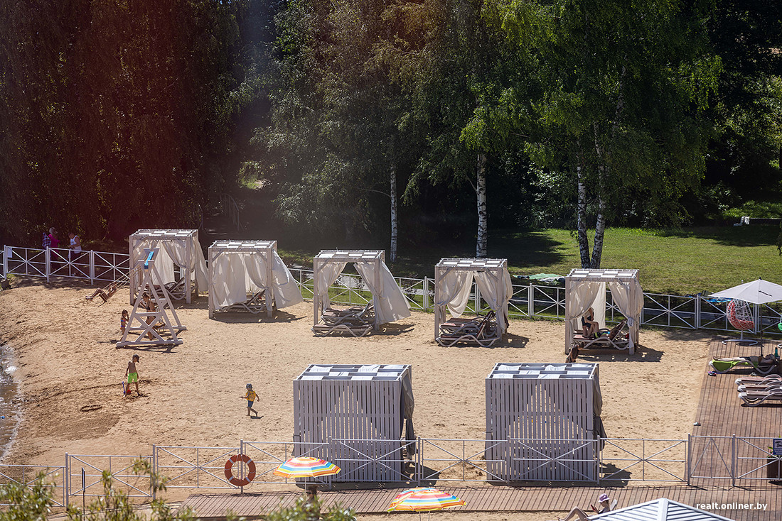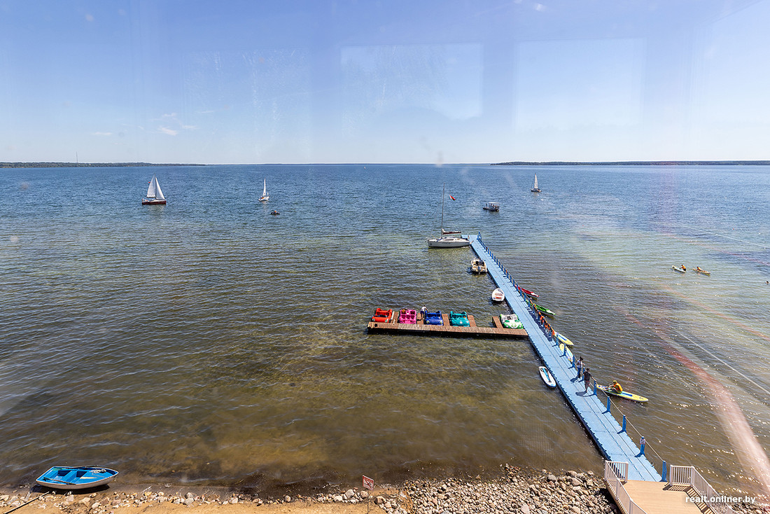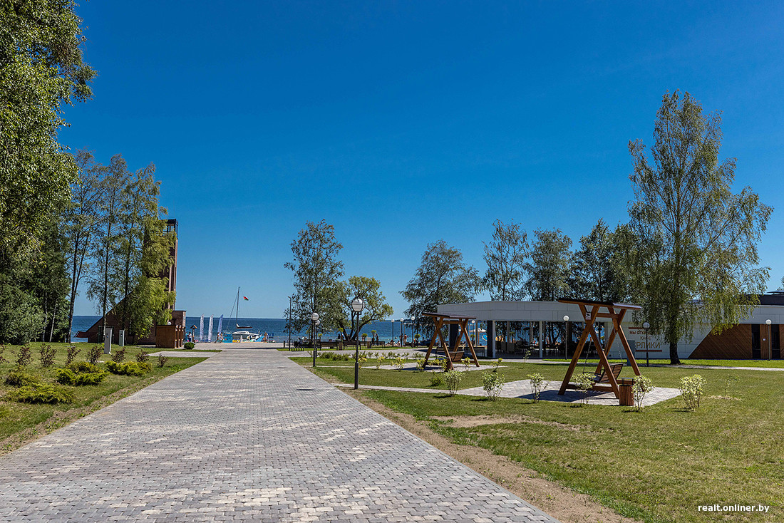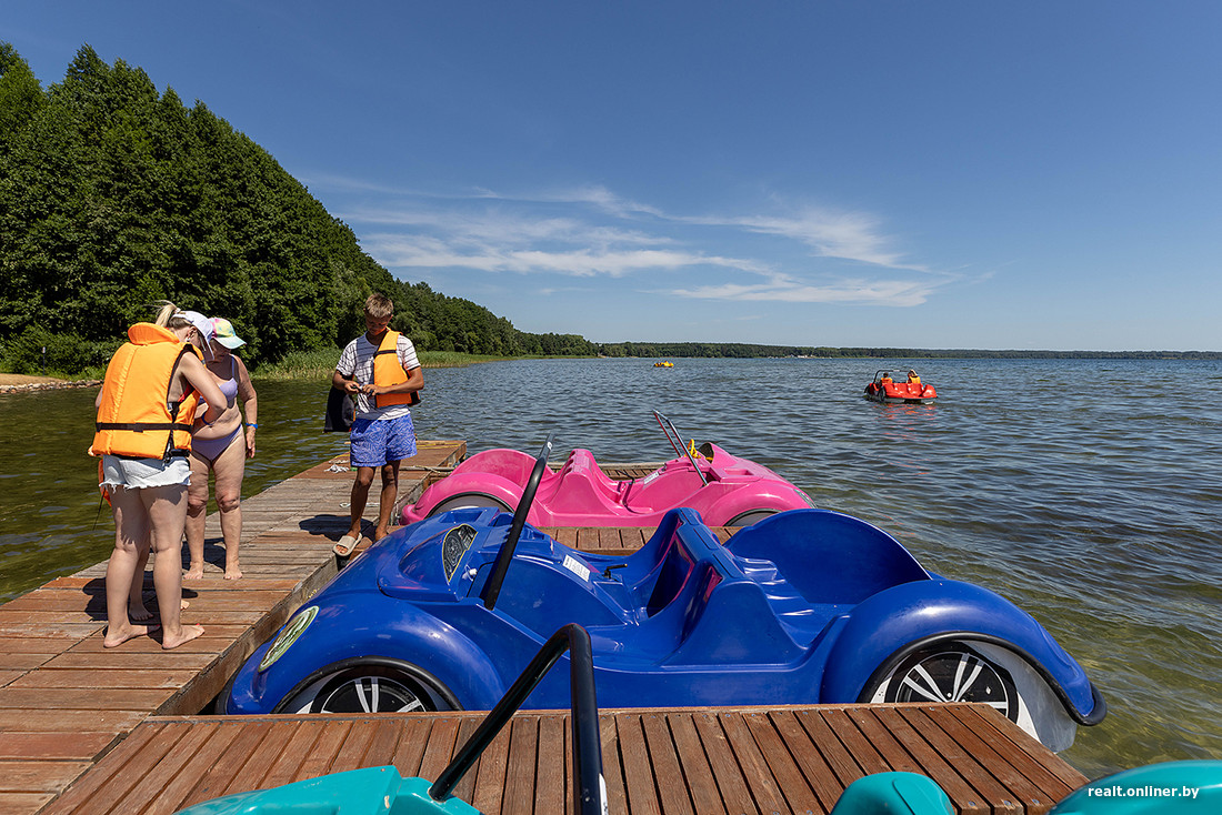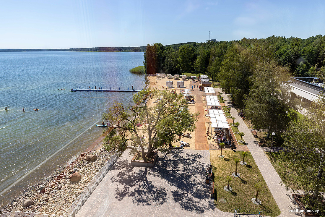— Пирс мы тоже полностью обновили, — отметил директор санатория «Приозерный» Сергей Нехвядович. — На пляж привезли несколько тонн песка из-под Молодечно — он мягкий, рассыпчатый, не утрамбовывается при ходьбе. А небольшой участок берега сделали каменистым. Вместе с проектировщиками решили, что так будет красивее.