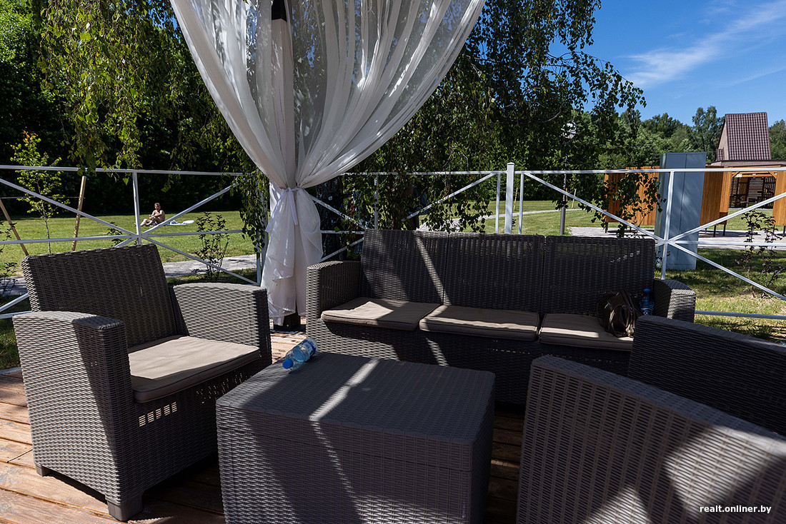 Ничего не менялось до 2022 года, пока территорию не передали санаторию «Приозерный». Тогда началась масштабная реконструкция, после которой берег наконец преобразился. Благодаря ландшафтным дизайнерам здесь появился ровный газон, декоративные кустарники и молодые деревья, дорожки из современной плитки, деревянные помосты. Тут и там разбросаны места для отдыха — качели, скамейки, гамаки… Беседки вместе с мангалами можно арендовать на два часа за 10 рублей, чтобы на вполне законных основаниях соблазнять окружающих запахом шашлыка.
