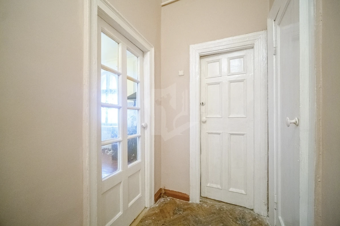 Любители ушедшей эпохи обязательно оценят родную лепнину и советский паркет на полу. Правда, пол, как и в целом интерьер в квартире, лучше обновить. Пожалуй, главным украшением этого жилья можно назвать два арочных окна, которые запроектированы в каждой комнате, а также небольшой балкон с видом на главную артерию столицы.