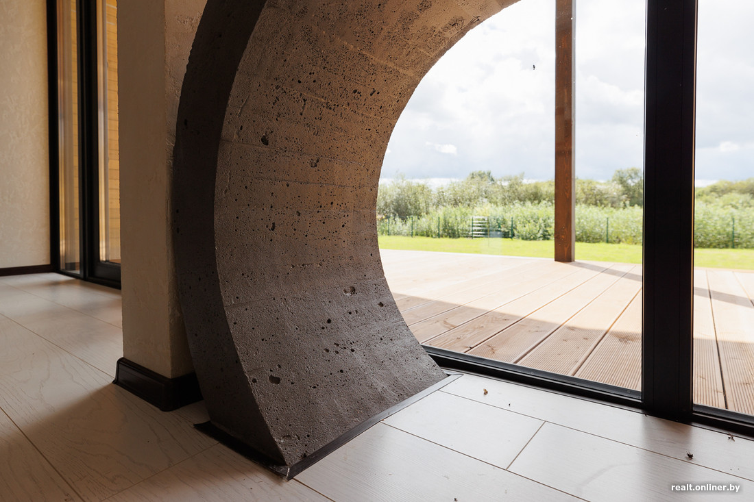 — Мебель в основном заказывали у брестских ребят: она и по дизайну классная, и доступная по цене. Стол на кухне мы вообще делали своими руками. Вырезали форму из фанеры и залили ее бетоном прямо в помещении. Весит она около 300 кг! — говорит Дмитрий.