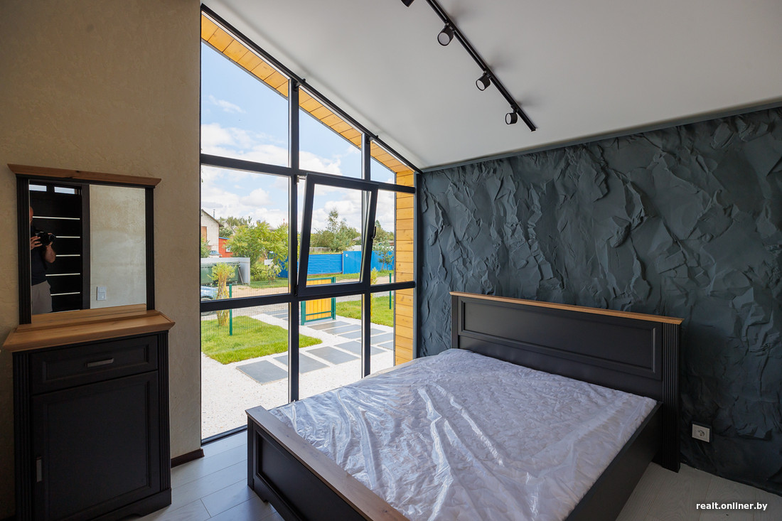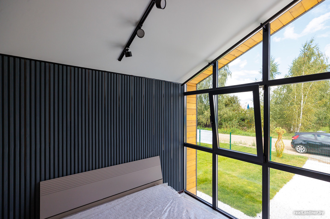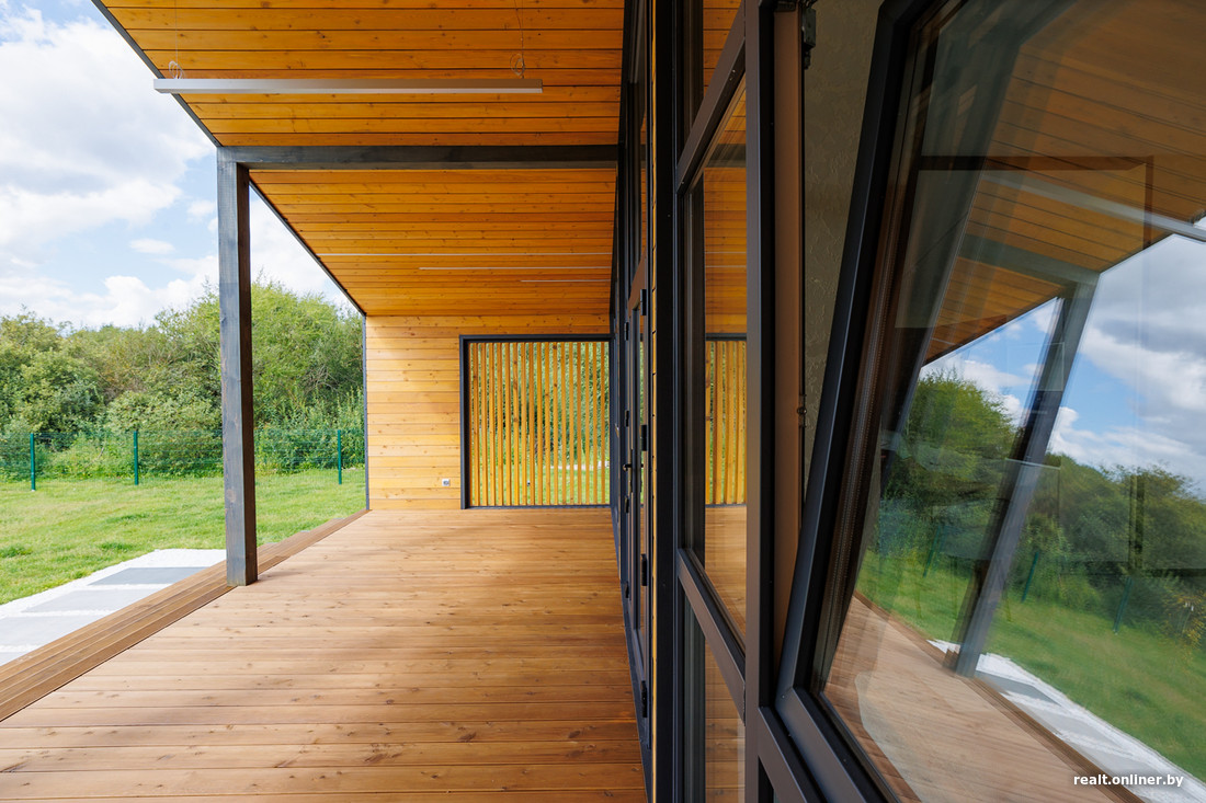 — Хотели сделать все быстро, качественно и за доступные деньги. Решили, что идеальным вариантом будет каркасник. Некоторые белорусы до сих пор побаиваются этой технологии, предпочитая здания из газосиликатных блоков, пусть они и стоят дороже. Хотя за рубежом это уже давно довольно популярное направление, — объясняет Артем, помогавший своему другу в строительстве. — Архитектурный проект взяли из интернета, но слегка доработали. Например, снаружи здание решили покрыть кликфальцем лишь частично, добавив побольше дерева. Все-таки фасады из металла делают дом похожим на какой-то ангар или гараж.
