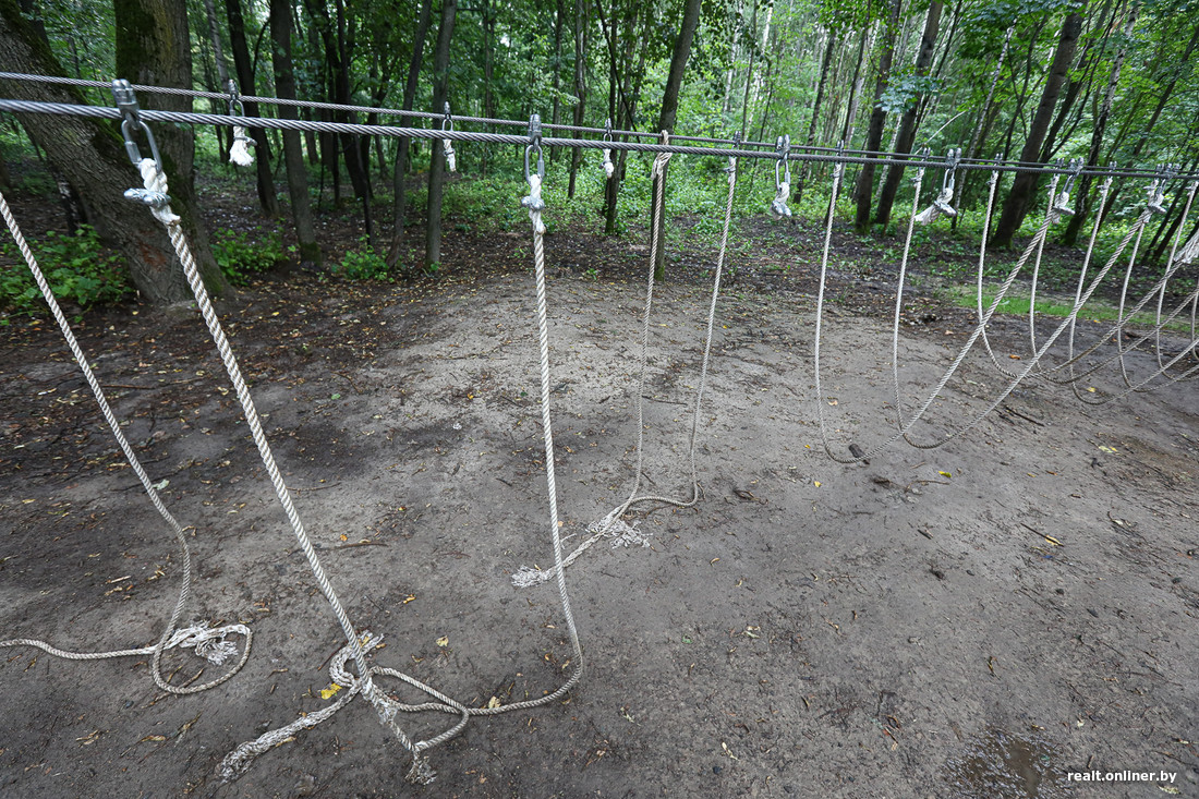 От вандалов пострадали все зоны веревочного городка. Видно, что это не случайно (или по глупости в целях эксперимента) кто-то разрезал веревки: действовали целенаправленно, обходя препятствие за препятствием.