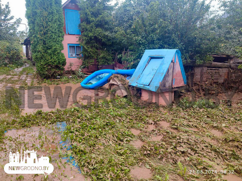 Поток воды смел все на своем пути: заборы, батуты, беседки. А в некоторых домах устроил бедлам и внутри. Дворы залиты грязью. Есть проблемы и с тем, чтобы добраться к деревне. Дорога в некоторых местах размыта.