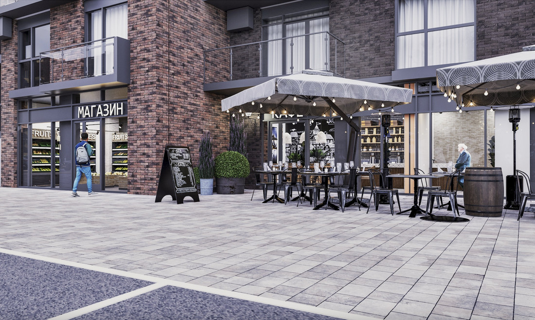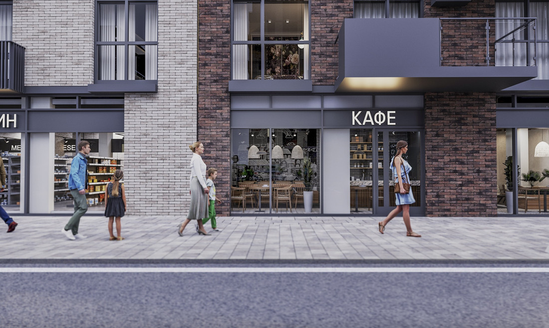 Входы в подъезды сделают с уровня земли. В каждом лобби (никаких стандартных подъездов) оборудуют комнаты для хранения колясок. Дворы украсят малыми архитектурными формами. Первые этажи домов отведены под коммерческие пространства. Арендаторов обещают подбирать так, чтобы обеспечить жителей микрорайона всеми необходимыми товарами и услугами. В общем, в квартале будут и свои булочные, и пункты выдачи заказов.