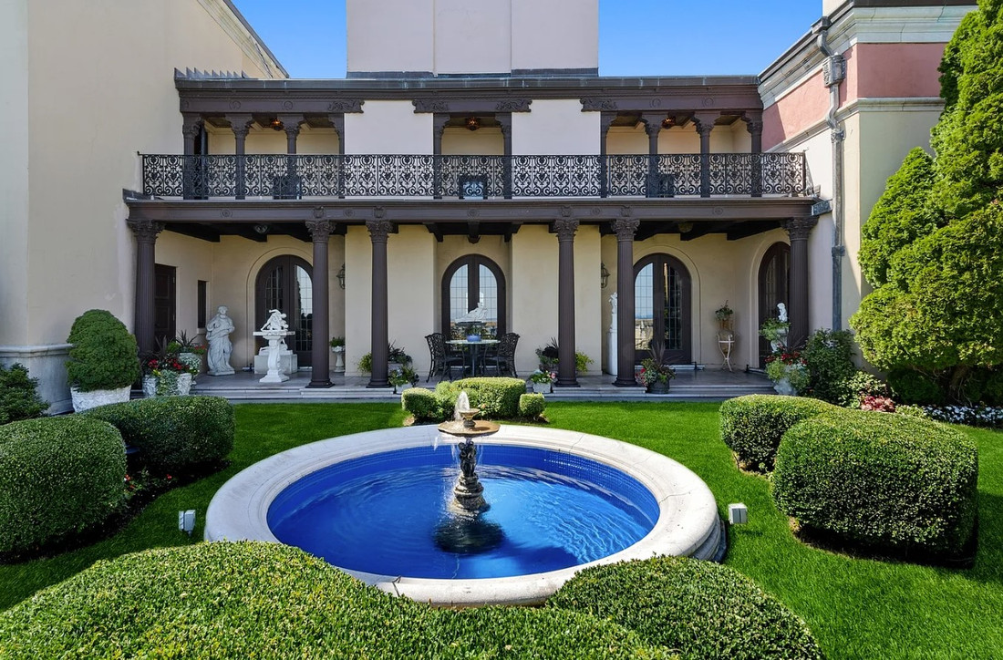 Его называют «Замком в небе». Он действительно похож если не на замок, то на прекрасный загородный дом. Вплоть до лужайки с фонтаном перед входом и роскошного вида на большое озеро. Вот только впечатление это обманчиво. Ведь на самом деле здание расположено вовсе не среди лугов или в лесу, а на стометровой высоте посреди огромного мегаполиса. Иметь собственный дом в центре города – это уже само по себе редкость, а получить возможность пользоваться инфраструктурой роскошного жилого комплекса – и вовсе ситуация из редких. Хотя не уникальных. Сейчас кровли высотных зданий все чаще эксплуатируются подобным образом. Вот только этот пример попадает в число первых экспериментов такого рода. Ведь построили это «бунгало», как скромно его называют соседи, почти сто лет назад. Недавно дом поменял владельца. Сделка была публичной, а значит, все любопытные получили возможность в деталях рассмотреть его интерьер. Хотя бы на фотографиях.