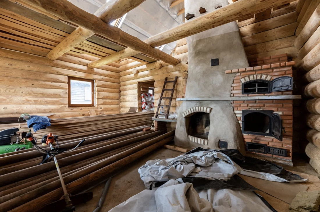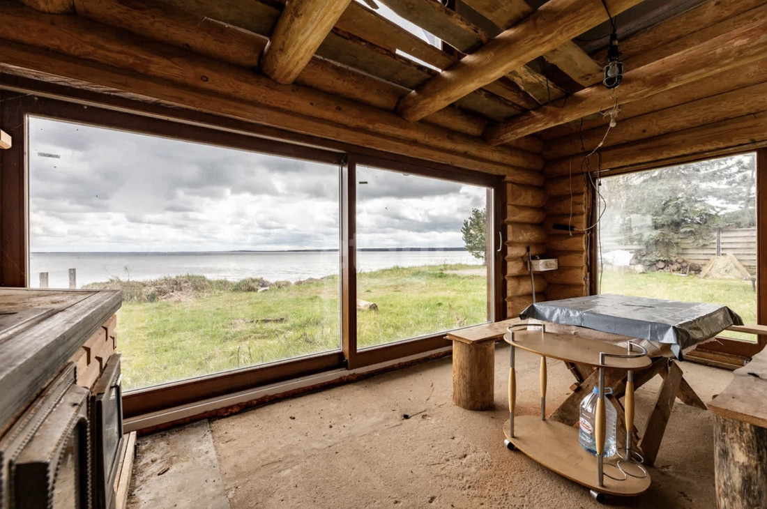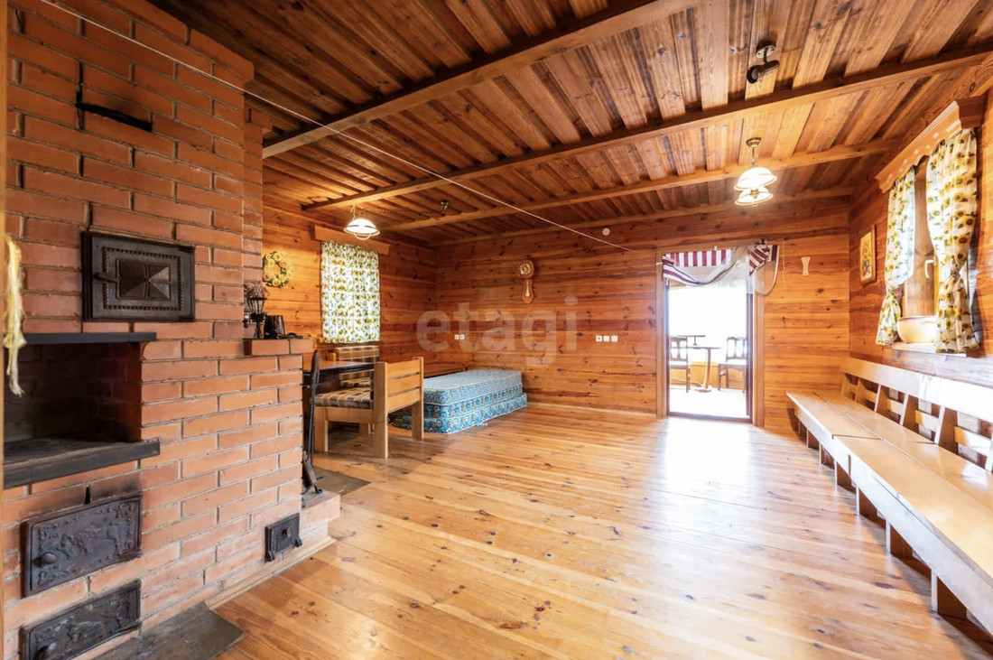 Внутри тоже все аутентично: дерево от пола до потолка, большая печка, лавки. «Докрутить» — и можно агроусадьбу открывать. Ведь место и правда золотое: если верить словам продавца, дом находится всего в 12 метрах от воды. Где еще такое встретишь?