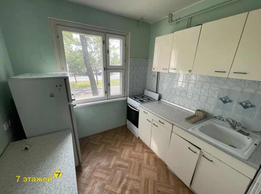 Ну а если не жалко $45 500 в эквиваленте, можно рассмотреть вот эту однушку в Чижовке, в девятиэтажке 1977 года. Размер — 34,5 квадратного метра. Планировка стандартная: изолированная кухня на 7 «квадратов», основная комната на 18, раздельный санузел. Интерьер подуставший, но его вполне можно подбодрить, если есть деньги.