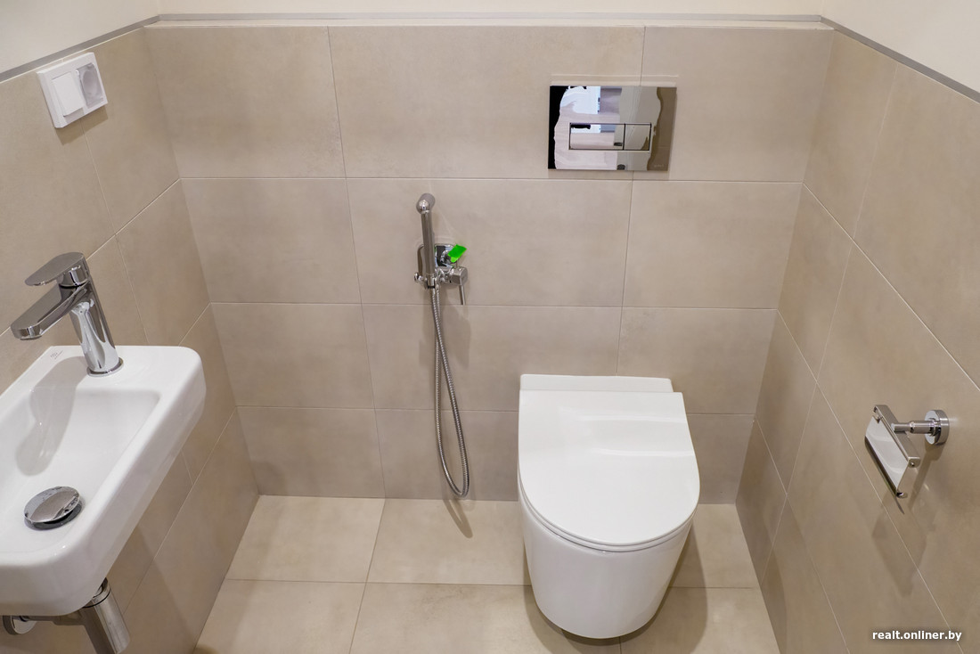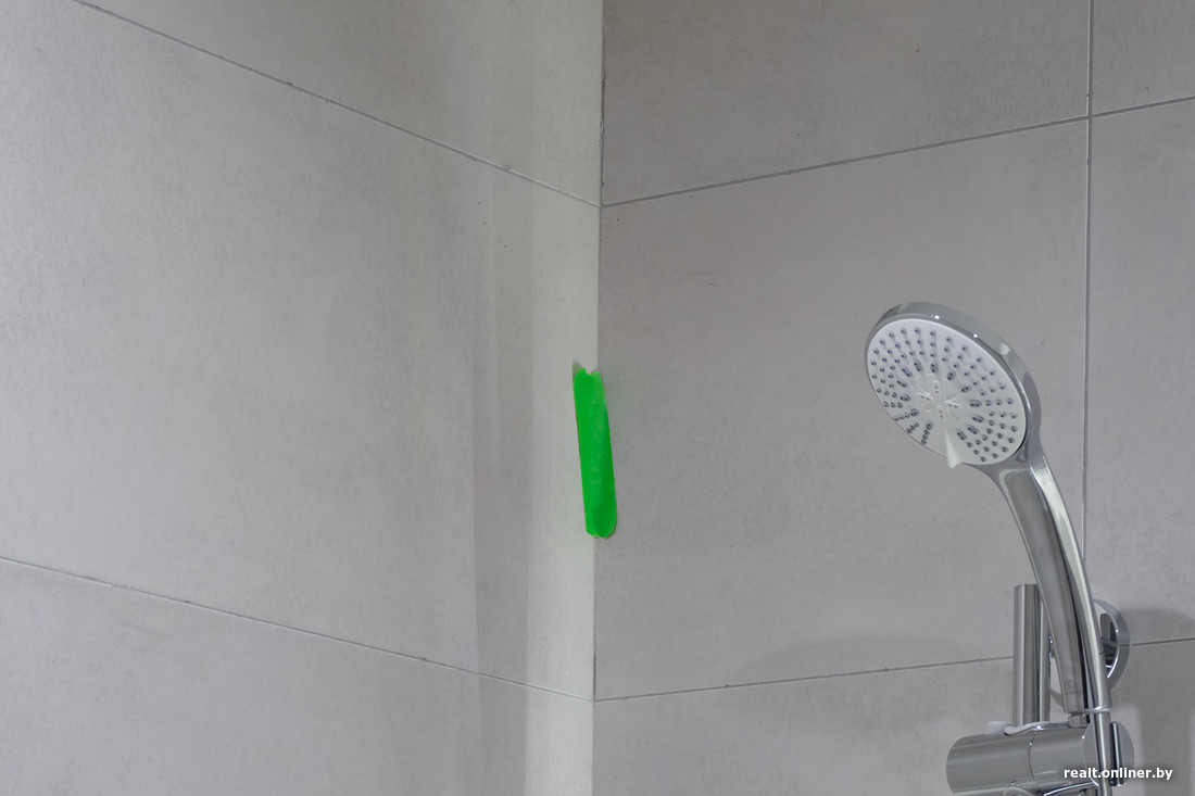 В санузле мастерам тоже пришлось поработать: подправить смеситель в ванной, чтобы он был строго горизонтальным, а также подсиликонить некоторые поверхности. На плитке, которая наклеена на ревизионный люк, находим сколы. Но так как она совершенно точно находится вне зоны видимости, уповаем на то, что «ранки» локально (и красиво) заделают.
