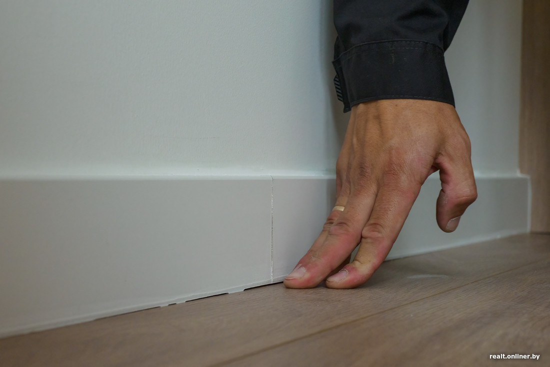 Также кое-где вижу швы шириной чуть больше, чем надо, где-то фаска приподнимается. Но в целом напольное покрытие у вас хорошее. В этом доме я видел варианты похуже, — отмечает Александр Скок из компании «Эво Лэнд».
