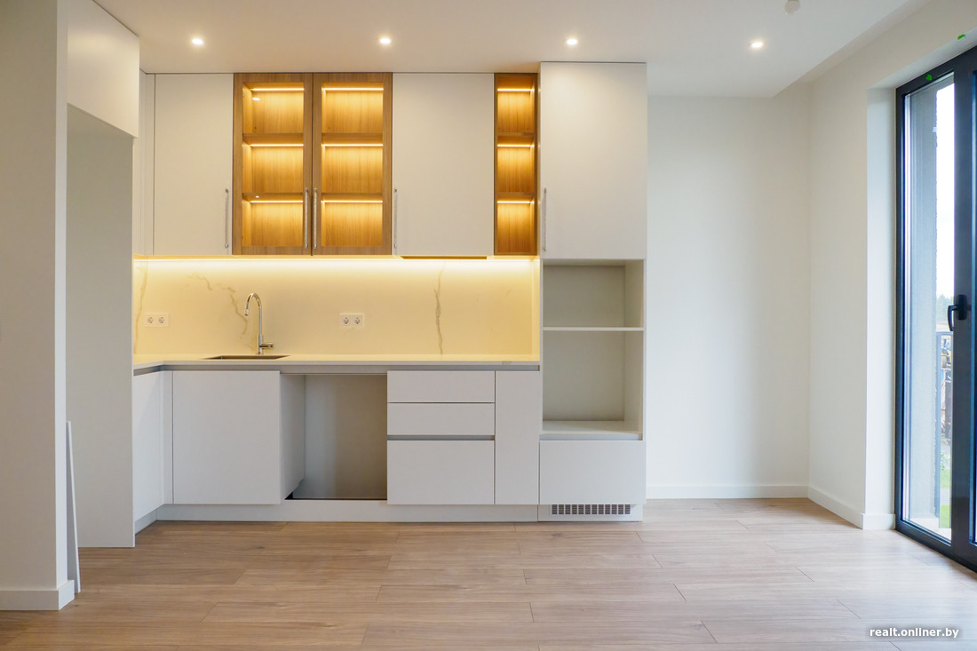 Было время, когда коммерческие застройщики буквально заваливали нас квартирами, готовыми к жизни. Каждый девелопер считал свои долгом показать миру собственный вариант «квадратов» с отделкой. А потом все будто затихло: минчанам стали продавать скучные бетонные стены — справляйтесь сами. «Серая» полоса иногда прерывалась разовыми предложениями, но переворота рынка недвижимости на западный манер точно не случилось. (Видимо, наши люди слишком любят ремонт.) Внести свою лепту в очень тонкий, но все же востребованный пласт жилья решили и в «Северном береге». Когда район только-только начинал строиться, было озвучено, что четвертый по счету дом станет непростым: все квартиры в нем сдадут с отделкой. А еще с кухонной мебелью, шкафами и кондиционерами. Сегодня вместе с компанией «Эво Лэнд» мы проверим, каким по качеству оказался готовый ремонт от нового застройщика. «Полигоном» для испытаний станет 57-метровая евродвушка, которую построили Евгений и Ольга.
