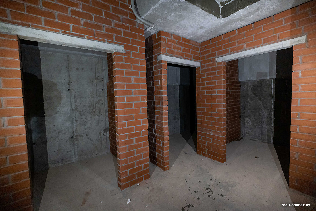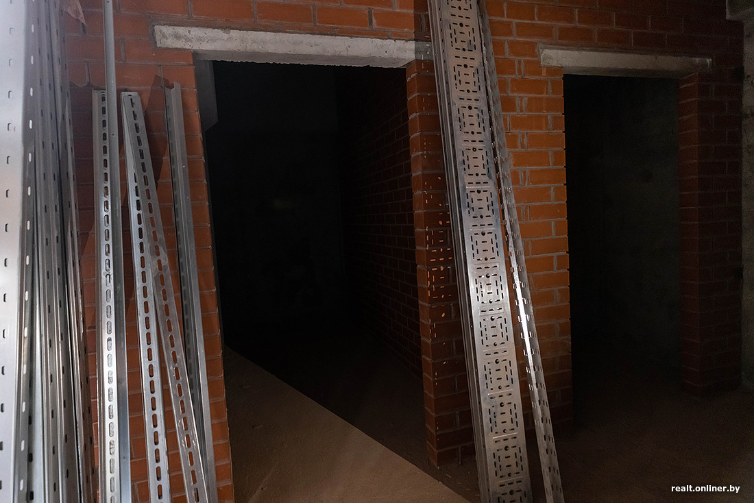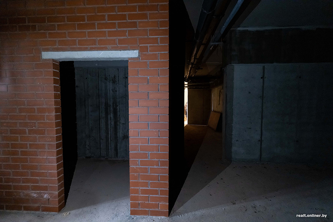 Экскурсию начали с кладовых помещений. Их застройщик решил продавать отдельно от жилья. В доме запроектировано порядка 173 кладовок разной площади. Дверей здесь пока нет, но высоту потолков оценить можно. Они здесь немаленькие — 3,4 метра. К слову, стоимость «квадрата» в кладовке — 2200 рублей. По цене доппомещение обойдется будущему собственнику почти как хороший шкаф под заказ.