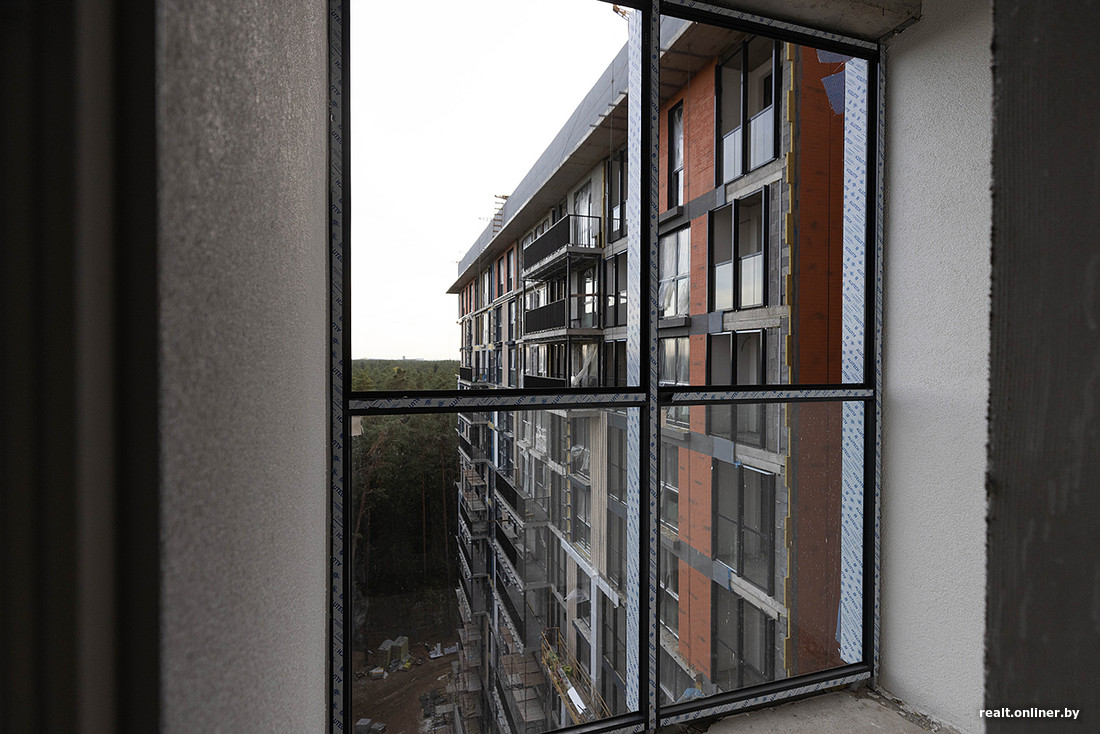 — Новостройка находится в высокой степени готовности — около 80%, — вводит в курс дела Виталий, замначальника отдела технадзора ГПО «Минскстрой». — Сейчас мы завершаем работы по фасаду и занимаемся благоустройством территории. Балконы уже сформированы, осталось установить стекла на лоджиях. Я думаю, недели две и дом будет полностью готов.