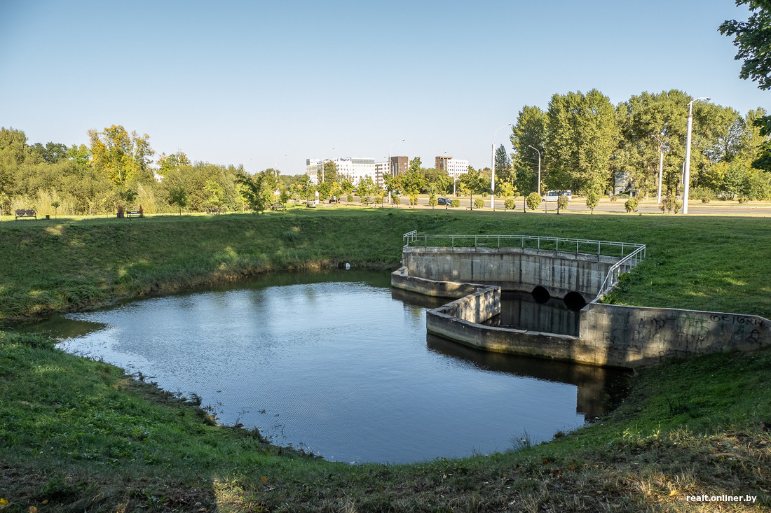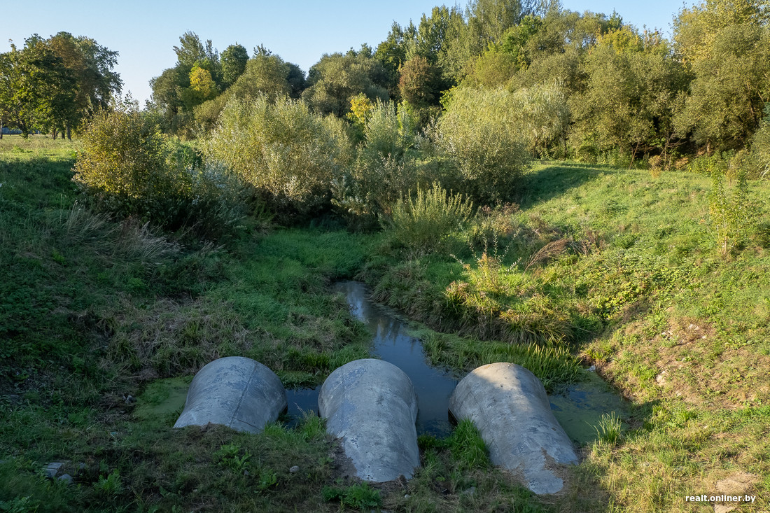 Примерно пять километров — это все, что осталось нам от Мышки. Когда-то левый приток Лошицы (а это именно он) был в полтора раза длиннее. И, конечно, полноводнее. Но развитие города и строительство инженерной инфраструктуры, в частности водозабора №2 и многочисленных скважин, иссушили реку.