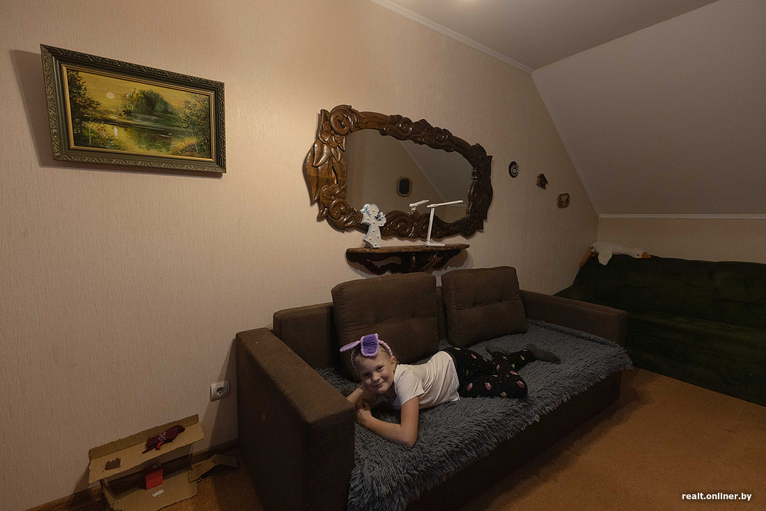 — Наш новый дом в 20 километрах от Минска, в деревне в Смолевичском районе, владелец построил для себя. Сам он живет в доме на 400 «квадратов» — уже пять лет пытается его продать и не может, — рассказывают супруги. — Мы сразу предупредили, что планируем жить здесь долго (пока сын школу не закончит — точно). Заключили договор аренды на два года и планируем продлевать. Потом, возможно, переедем в домик поменьше.