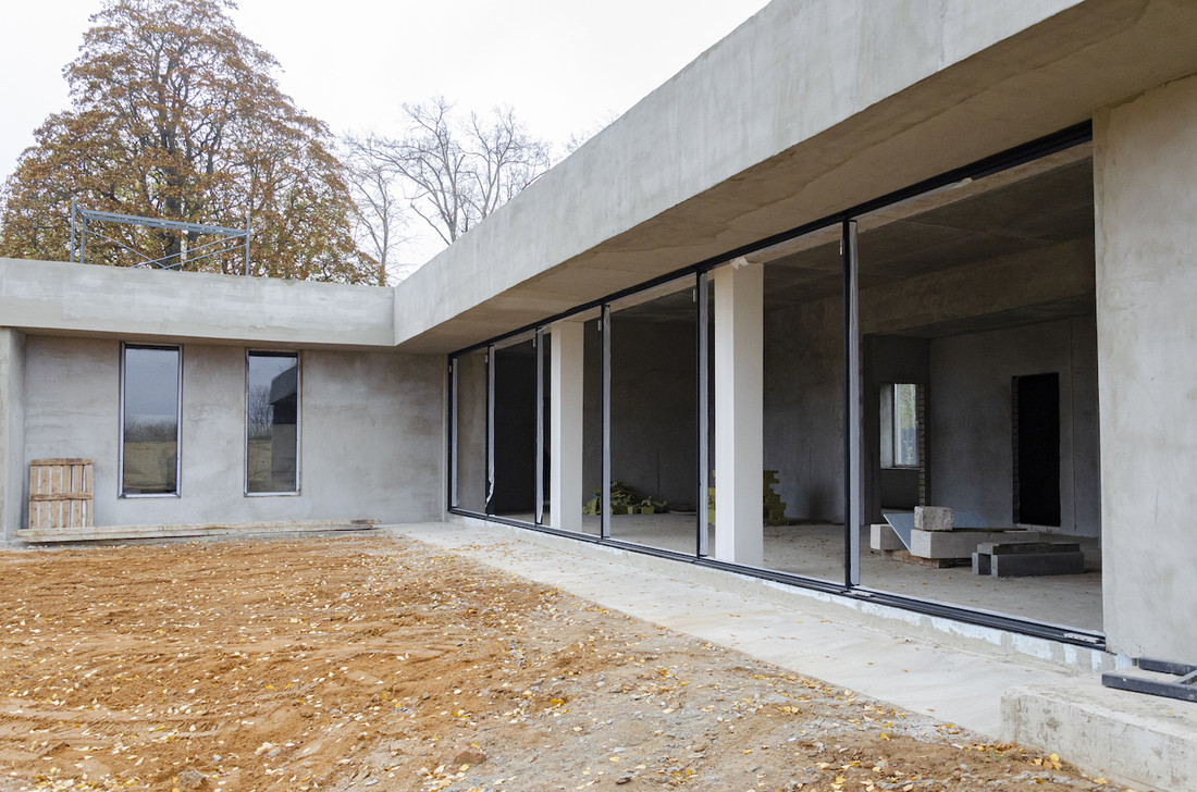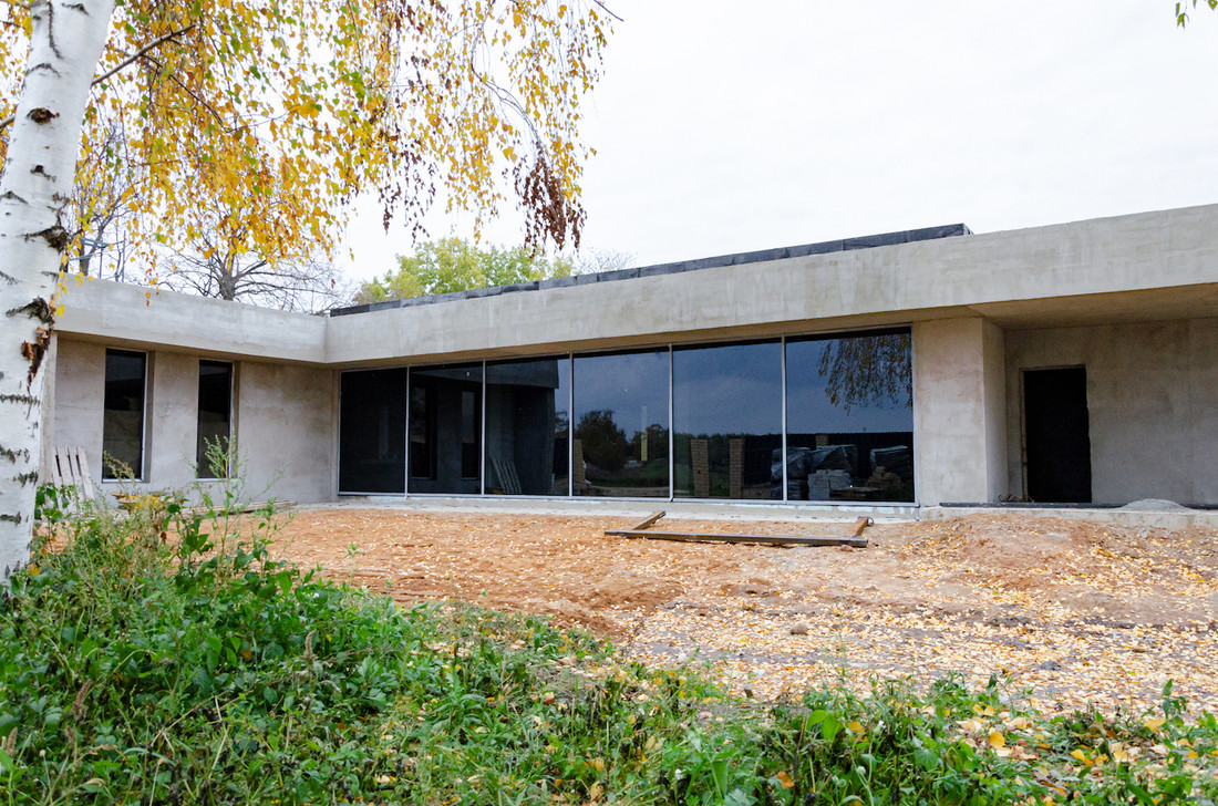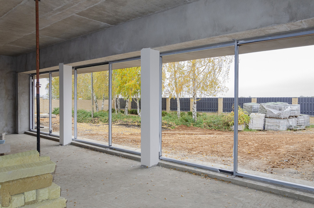 Кстати, насчет мытья окон. За этот момент я не переживаю: сверху в доме сделан солидный монолитный выступ, так что капли не должны сильно залетать, снизу тоже есть бетонная «ступенька», которая будет принимать на себя удар. Плюс в домашнем арсенале много бытовой техники — справимся. Мы же не на девятом этаже.