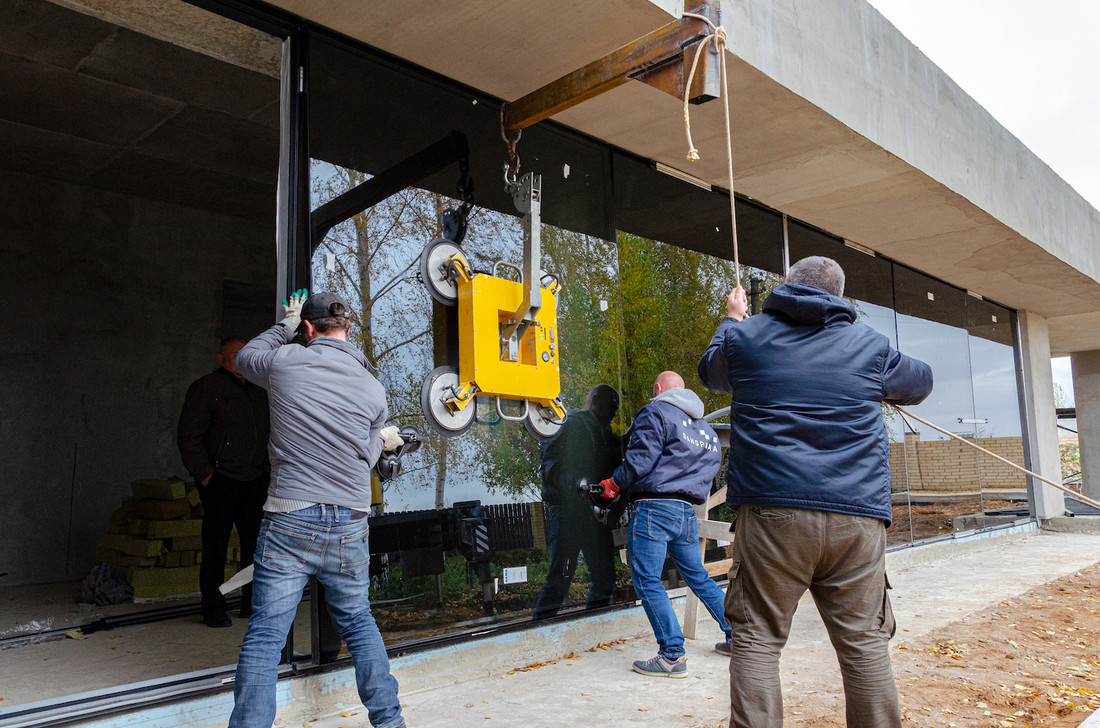 Также к участку должны быть организованы нормальные подъездные пути. Доставляются окна на «пятитоннике», то есть машина как минимум не должна застрять по дороге. А еще нужны кран, манипулятор, специальные механизмы. И они тоже не должны увязнуть. Надо понимать: такие стекла на руках не понесешь. Даже шесть человек не справятся с этой задачей. Только техника.