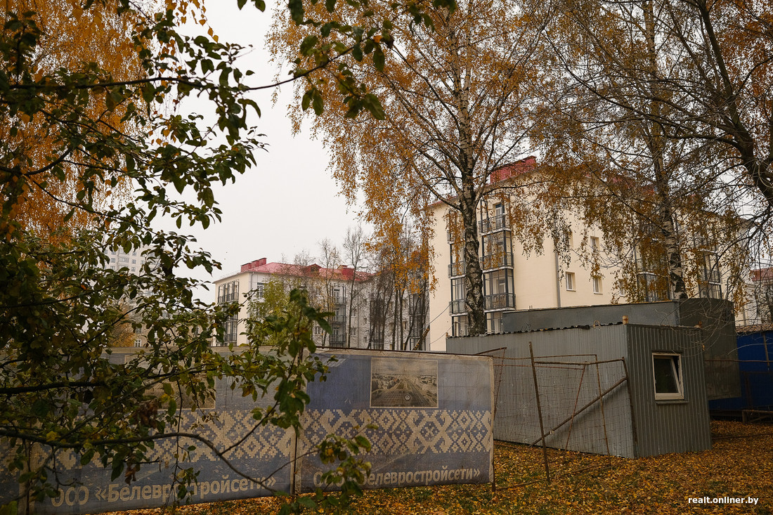 Прямо на ограждении дома висит баннер, что к долевому строительству еще можно присоединиться на общих условиях. Стоимость «квадрата» с отделкой — 4134 рубля (примерно 1240 долларов по актуальному курсу). Во времена подскочивших цен на недвижимость предложение может кому-то показаться вполне интересным.