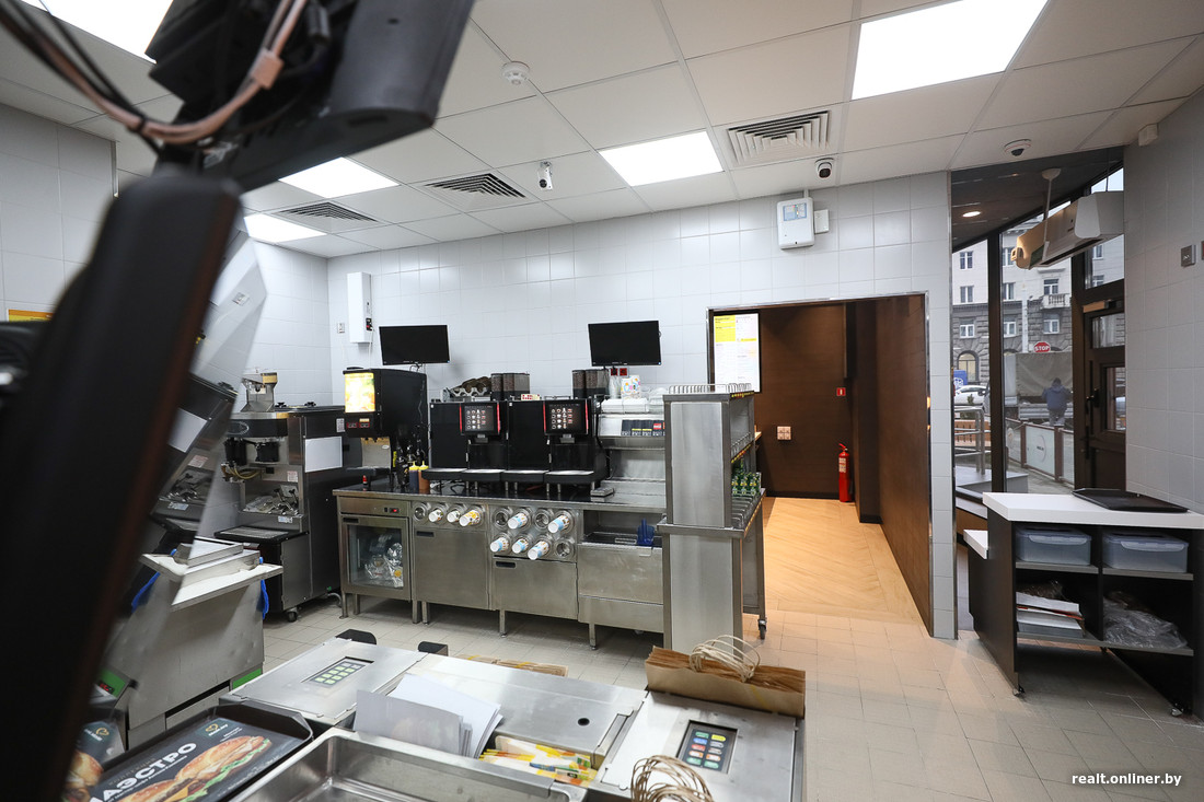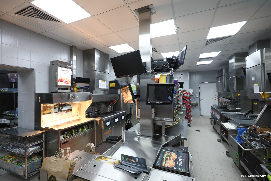 Прилавок, где раньше гости совершали и забирали заказы, теперь разделен на отдельные зону выдачи и зону с кассами, что позволило расширить территорию кухни — у сотрудников появилось больше рабочего пространства. Кроме того, в ресторане обновили оборудование для приготовления еды: установили новые грили для жарки котлет и современные фритюрницы, в которых готовятся картофель, наггетсы, стрипсы и другие продукты из курицы.